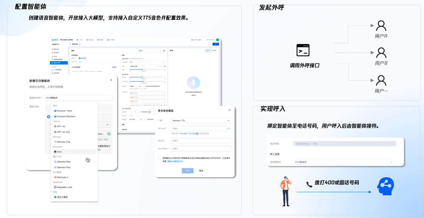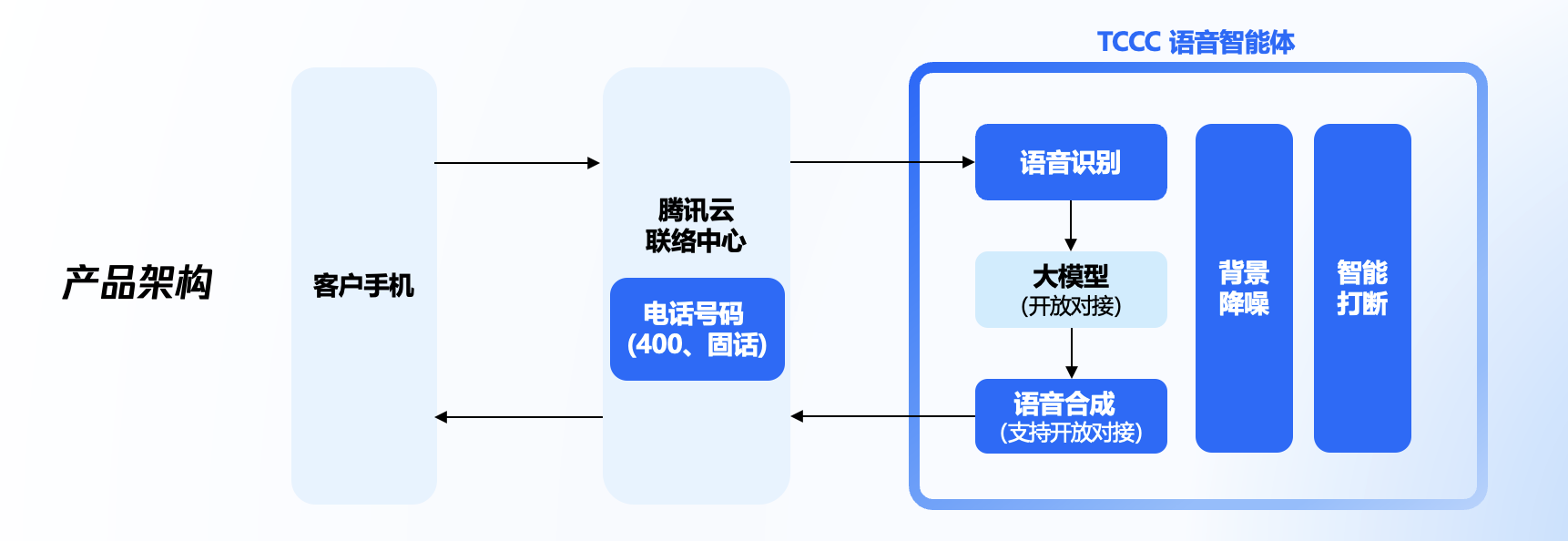 腾讯云联络中心语音智能体(TCCC Voice AI Agent)帮助企业在电话渠道实现大模型驱动的 AI 通话。可快速让文本大模型开口说话并帮助企业接打电话。