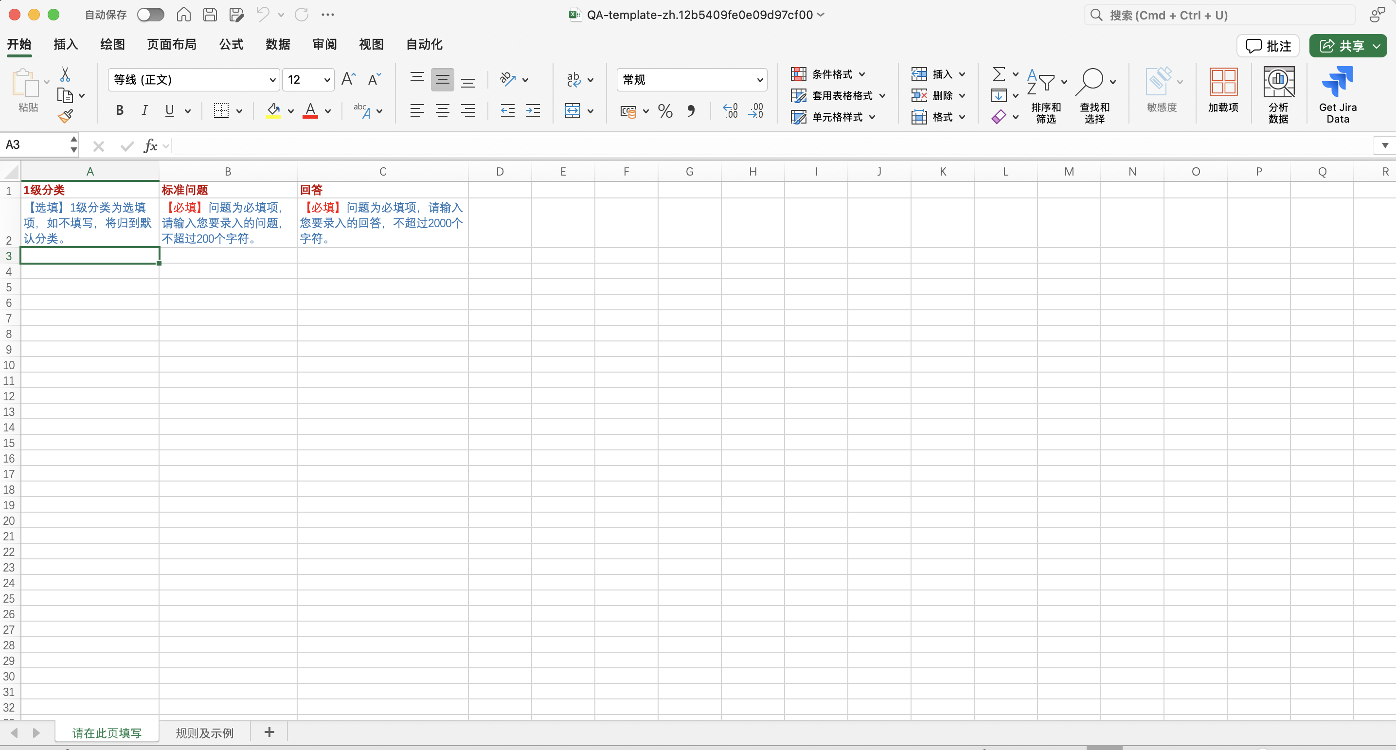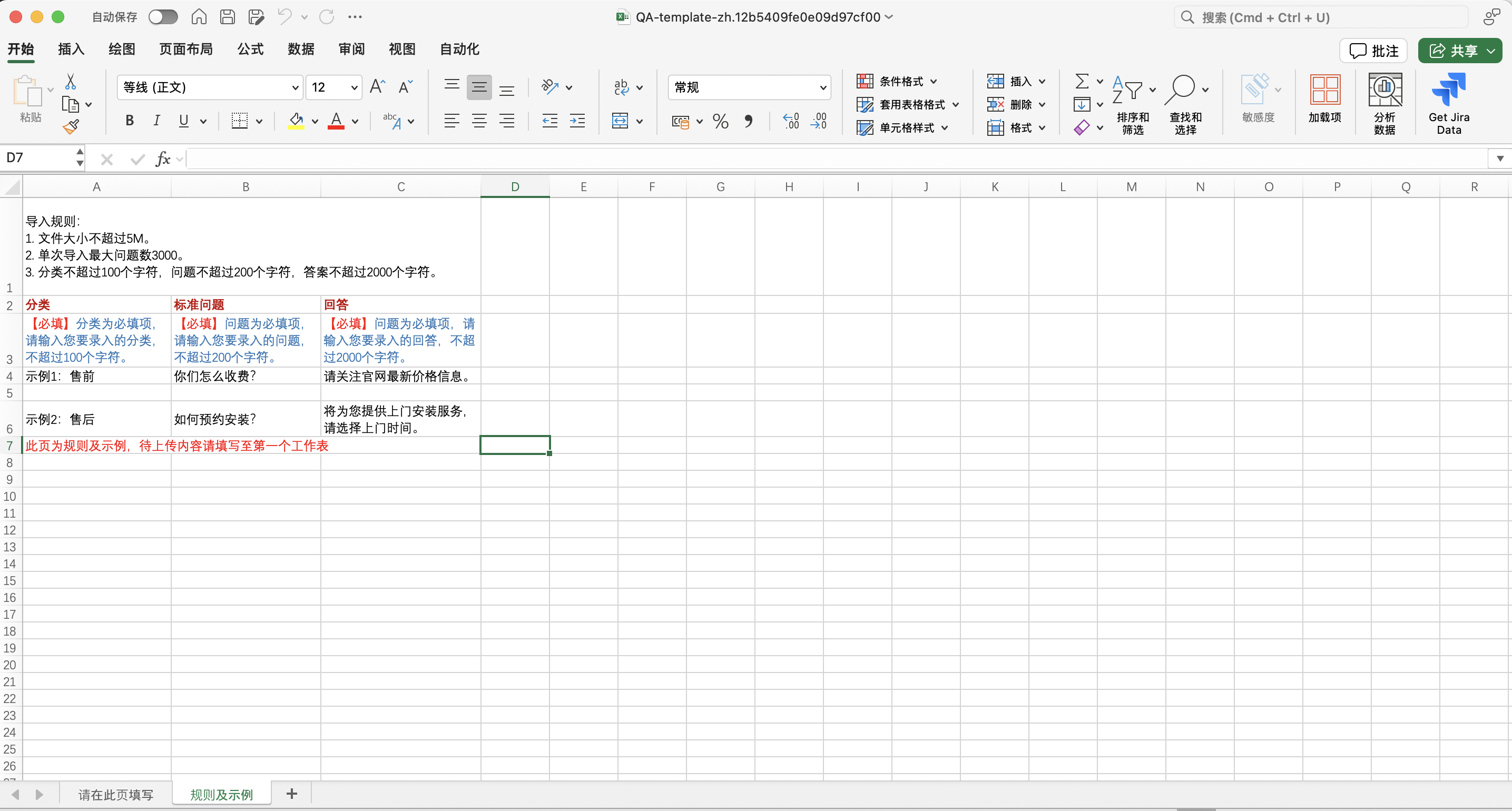 步骤2:下载完成后,您将进入 Excel 的规则及事例页面,您需要按照上面的指示进入第一个工作表填写模版。
