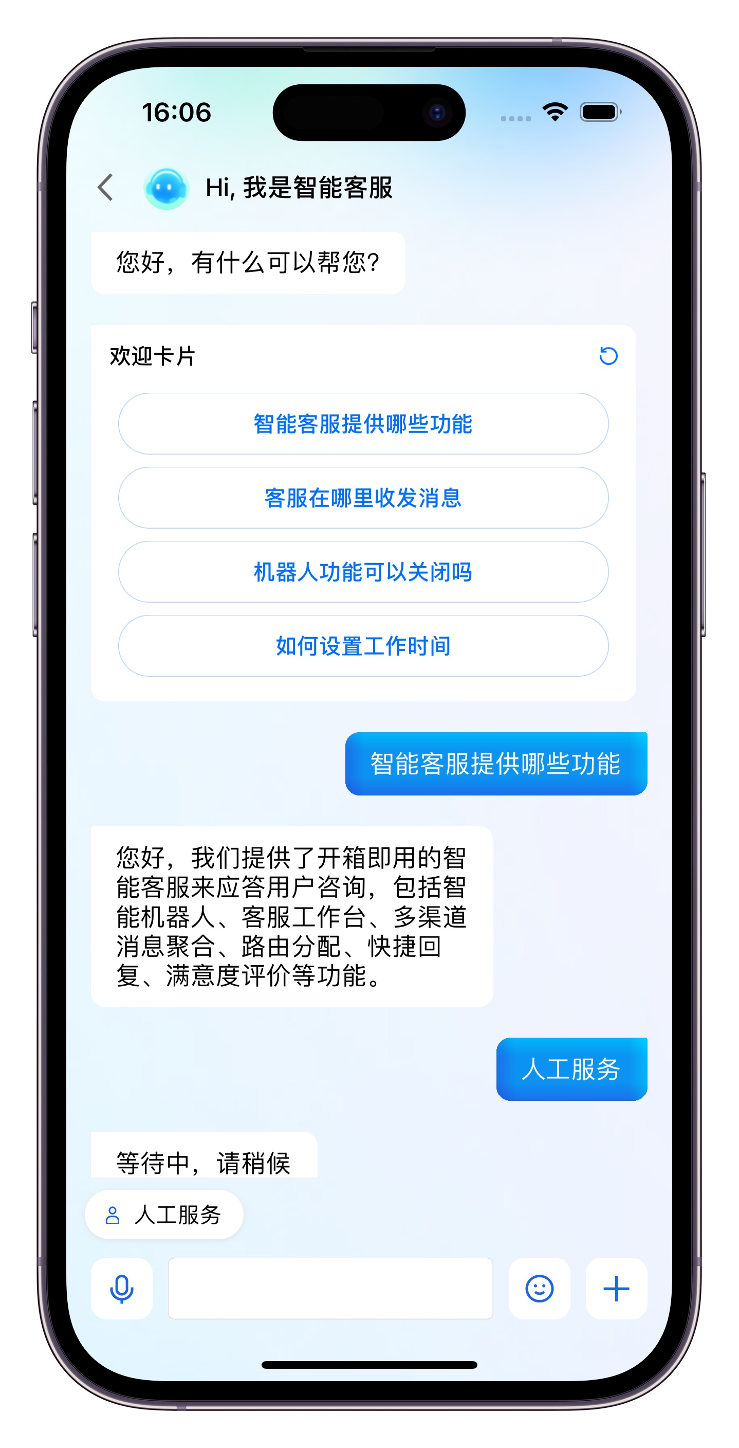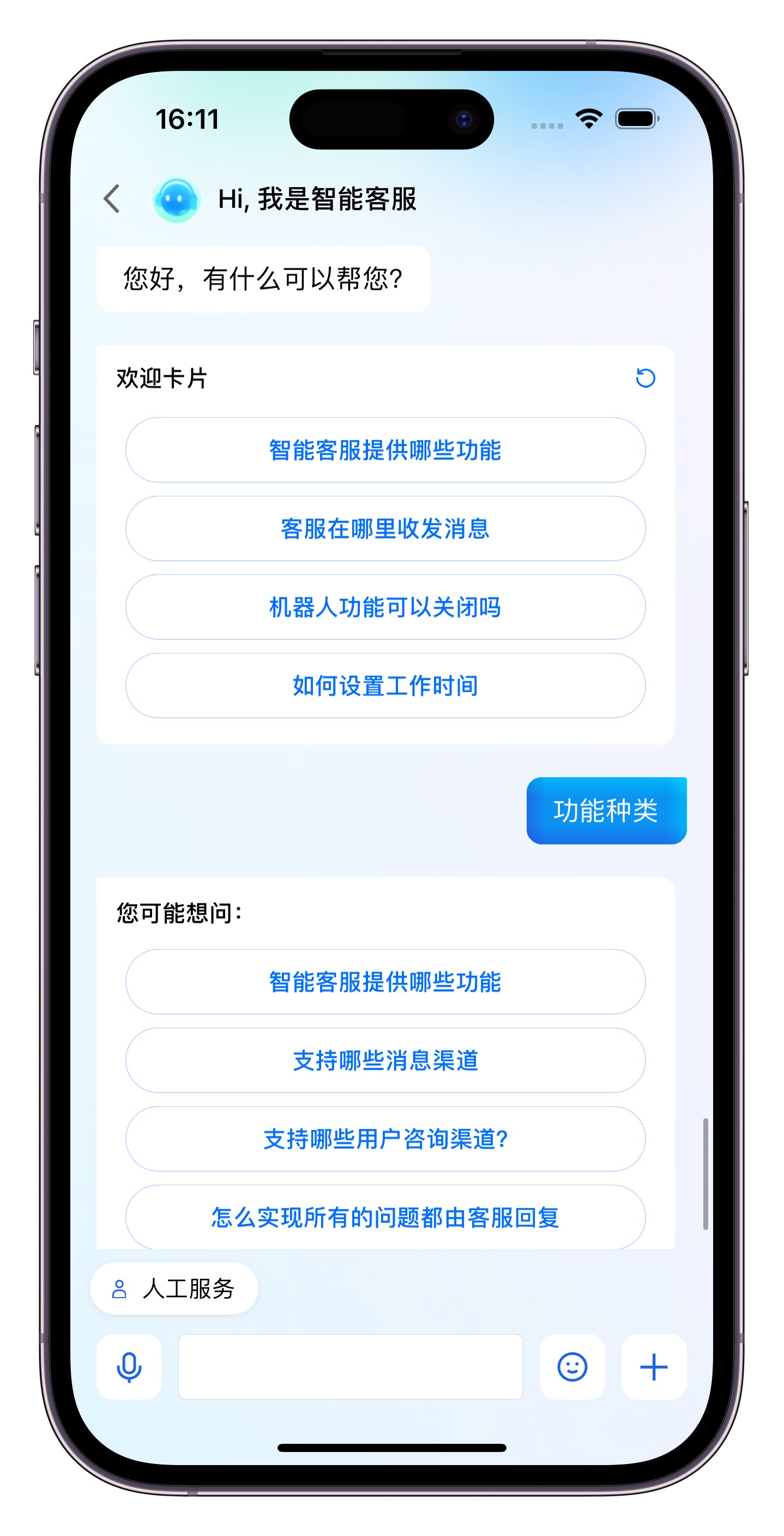 #import <TencentCloudAIDeskCustomer/TencentCloudCustomerManager.h>// 一定要确保已经登录成功了,否则直接跳转过去就是空白[[TencentCloudCustomerManager sharedManager] pushToCustomerServiceViewControllerFromController:self];