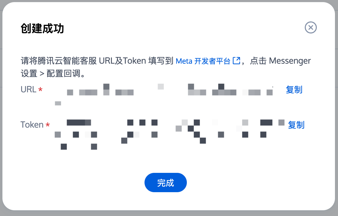 3. 请将 智能客服的 URL 和令牌复制到 Facebook 回调界面。