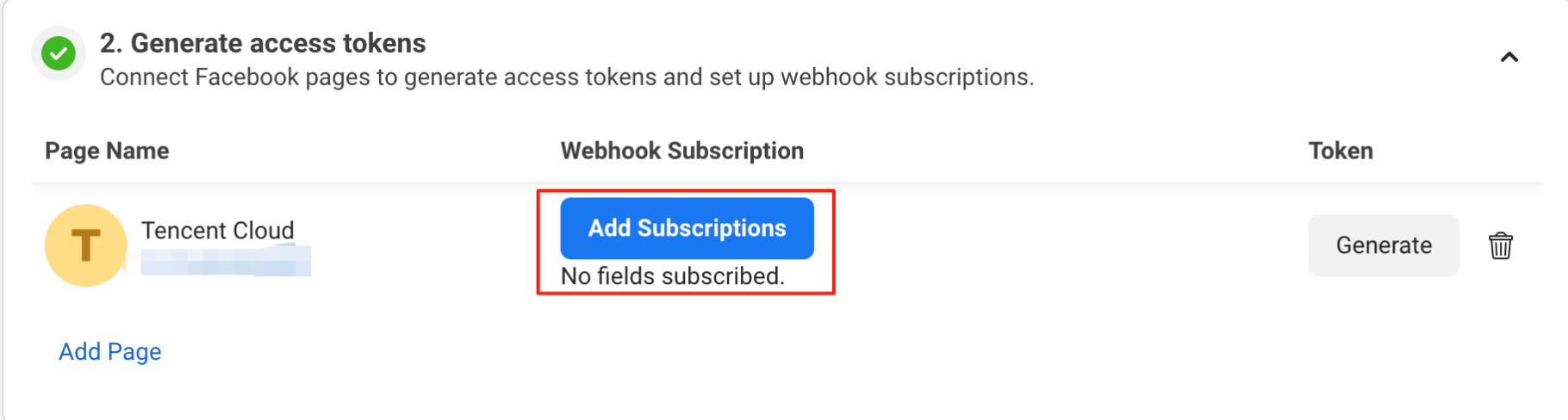 3. 将您的 Facebook 企业页面关联后,单击新增订阅按钮。
