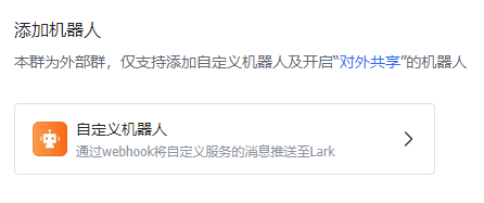 4. 在添加机器人页面,单击自定义机器人。