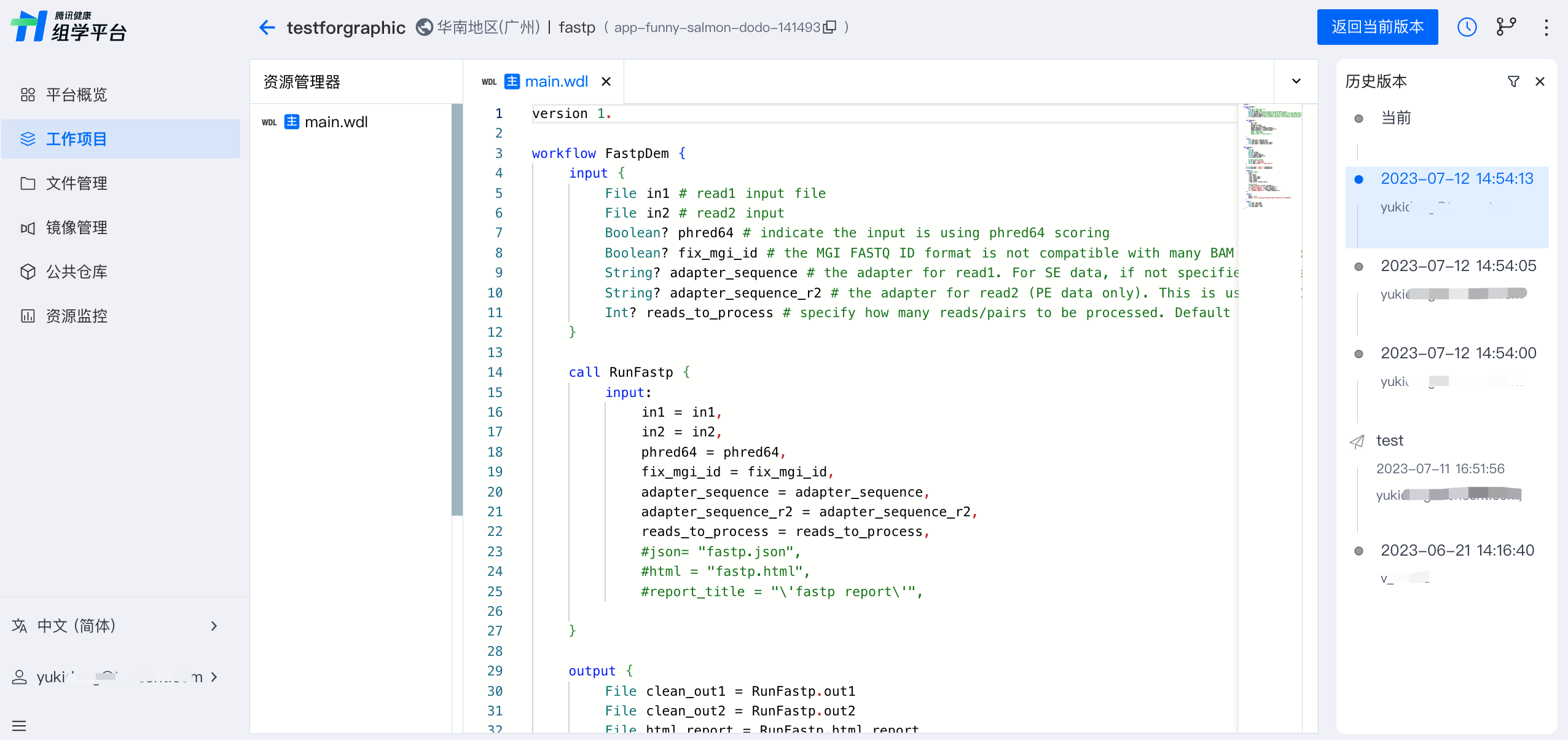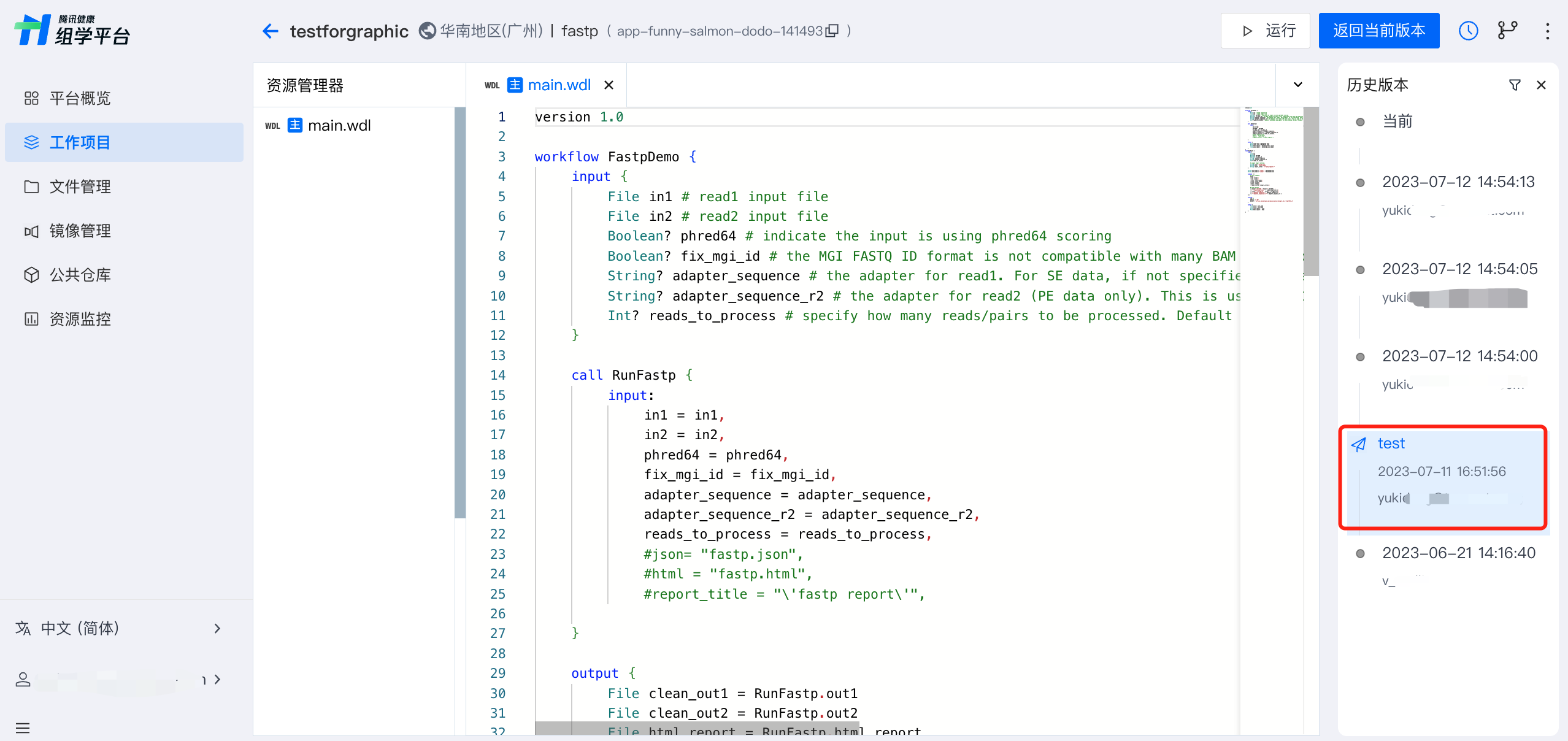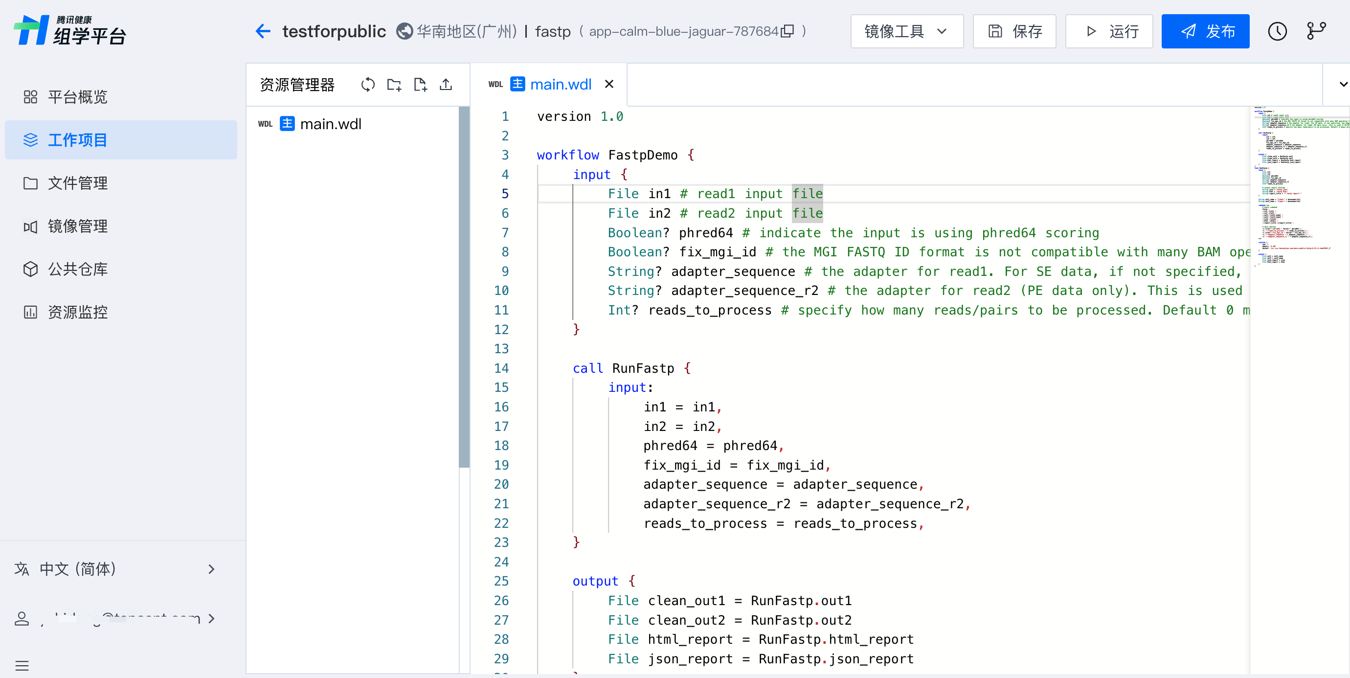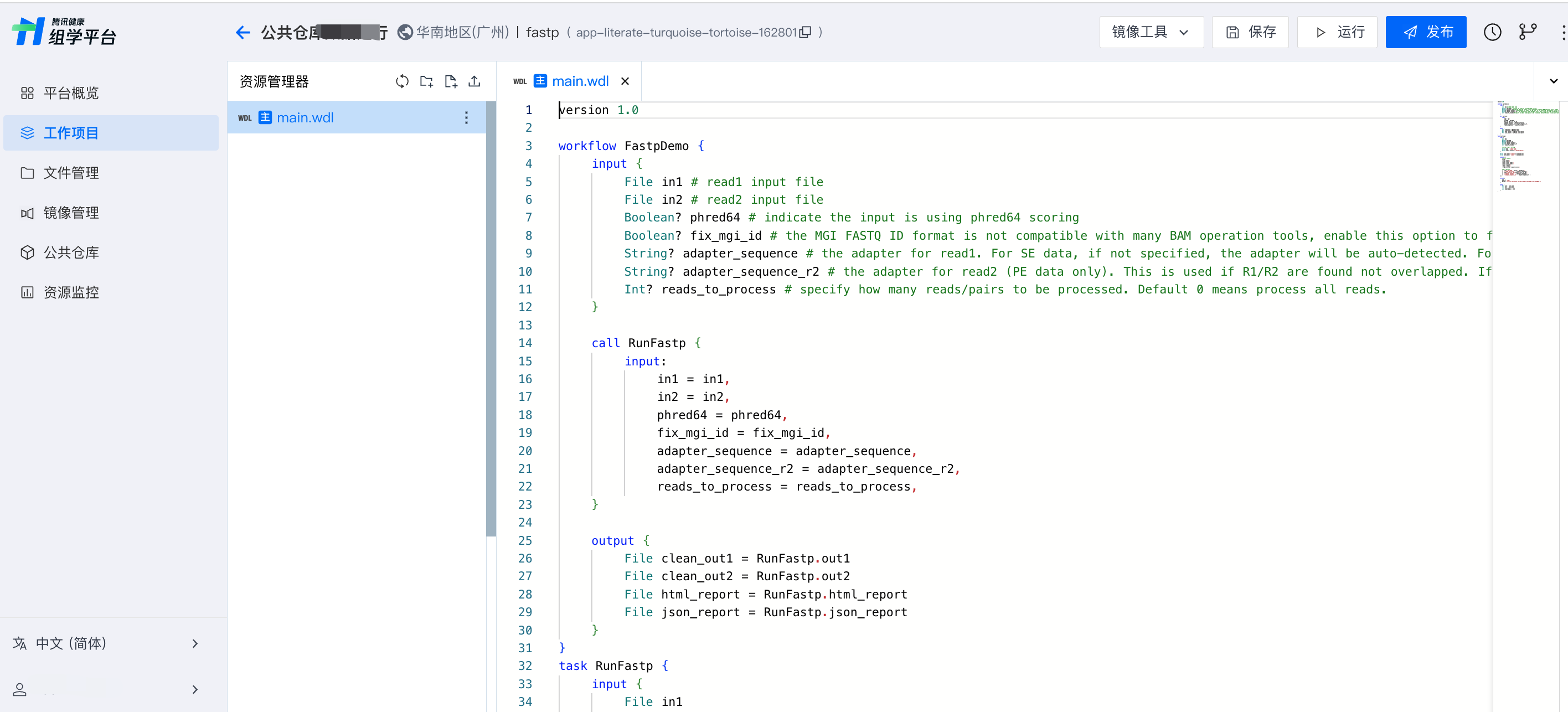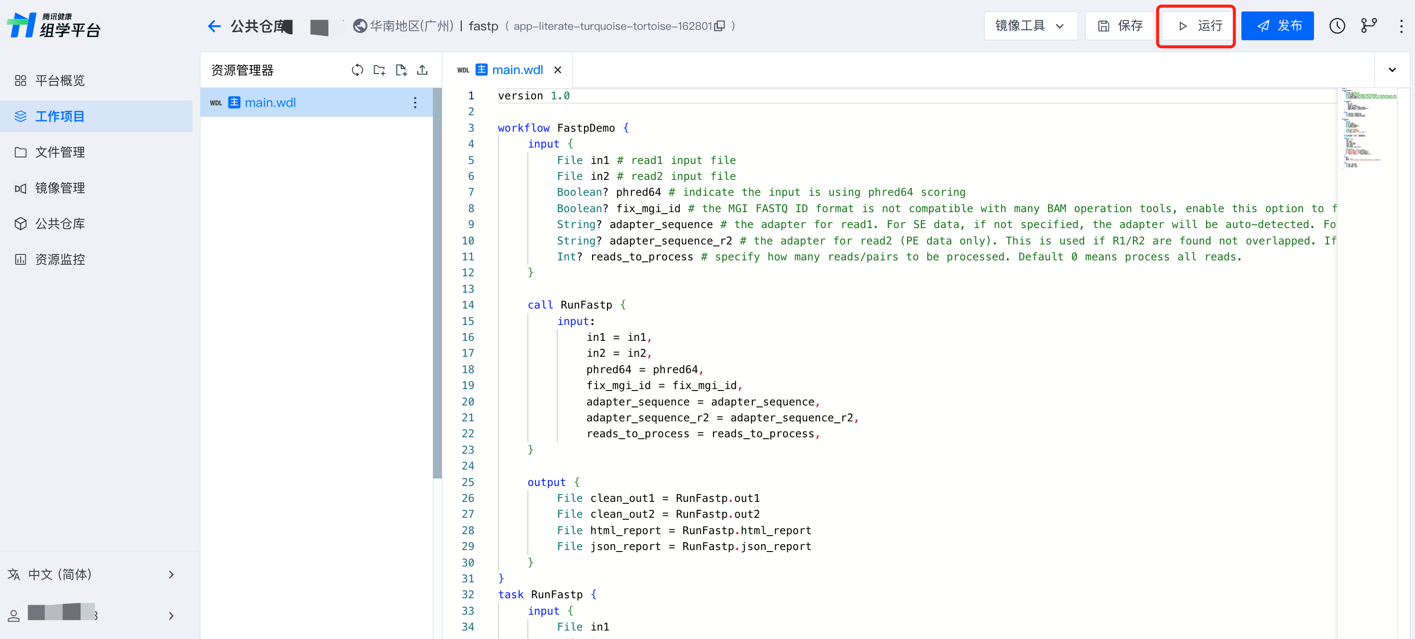 运行时需要选择作为运行入口的 WDL 文件为主文件。