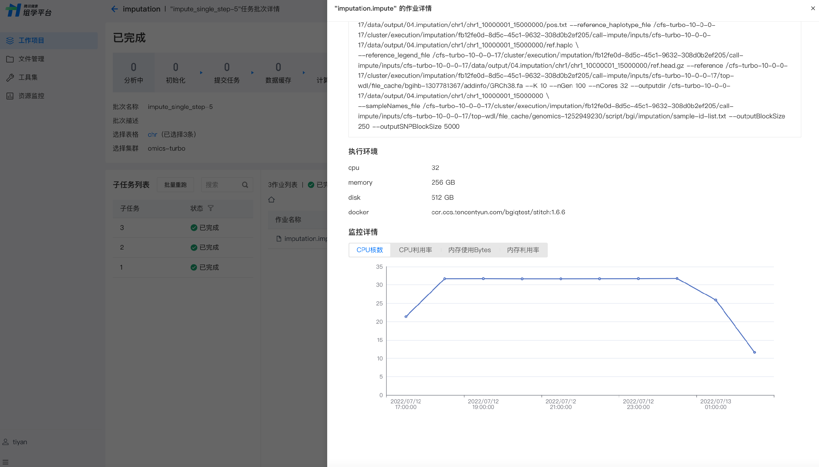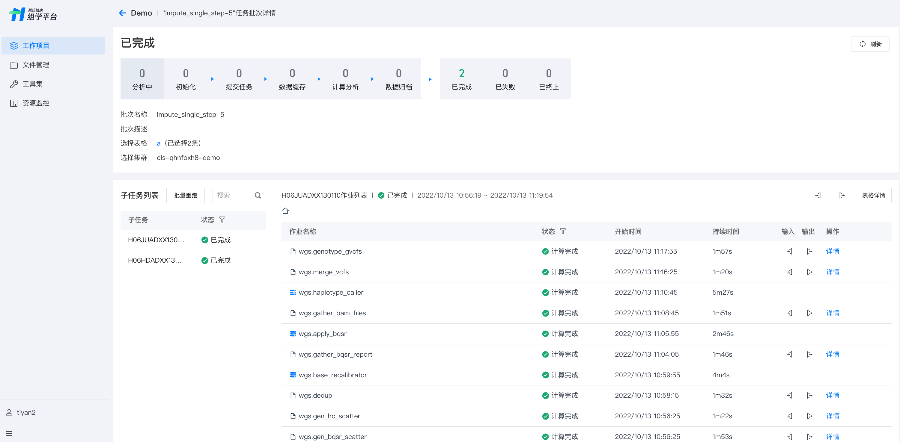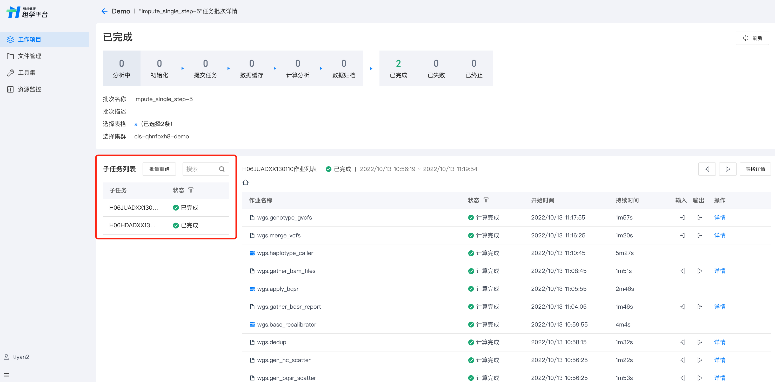 可通过子任务列表查看单个子任务的状态,子任务列显示的子任务名称为对应的 subtask_id。