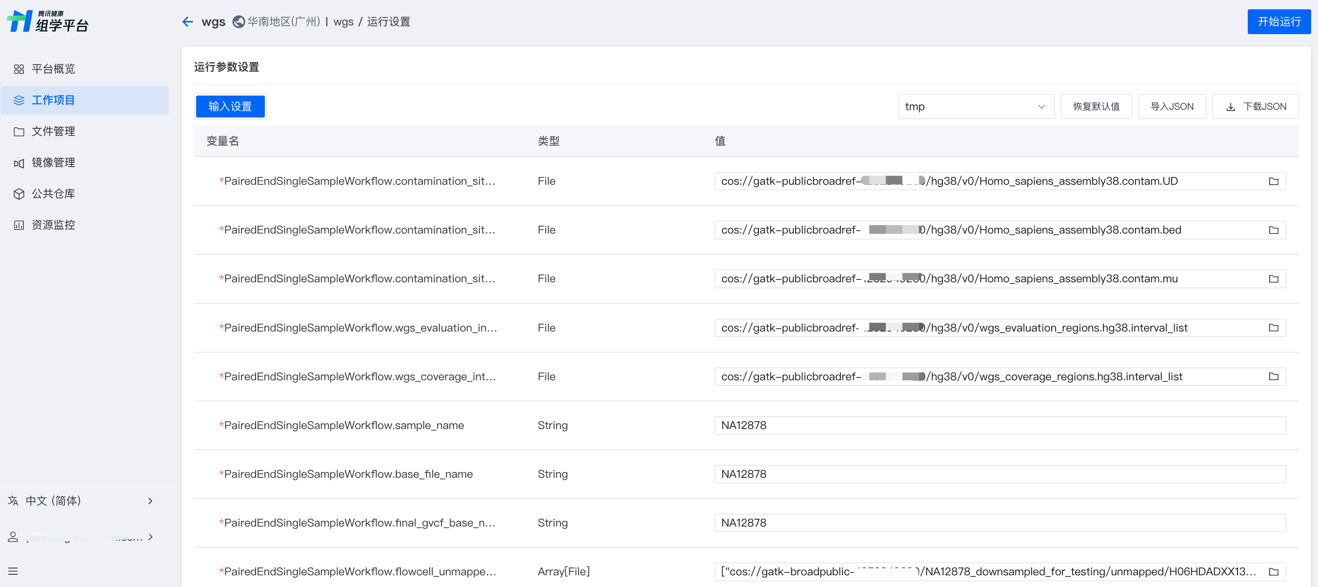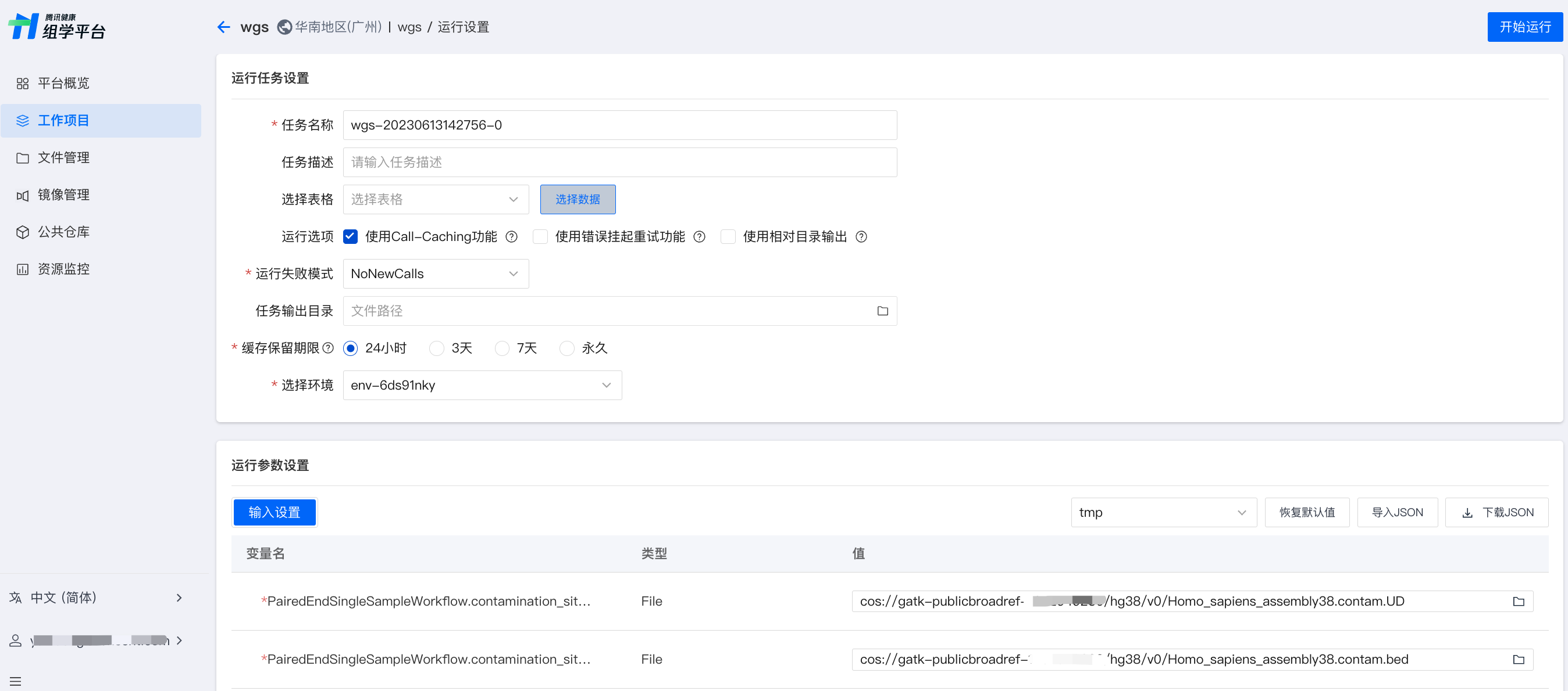 运行参数可根据 WDL 解析出的参数填写。