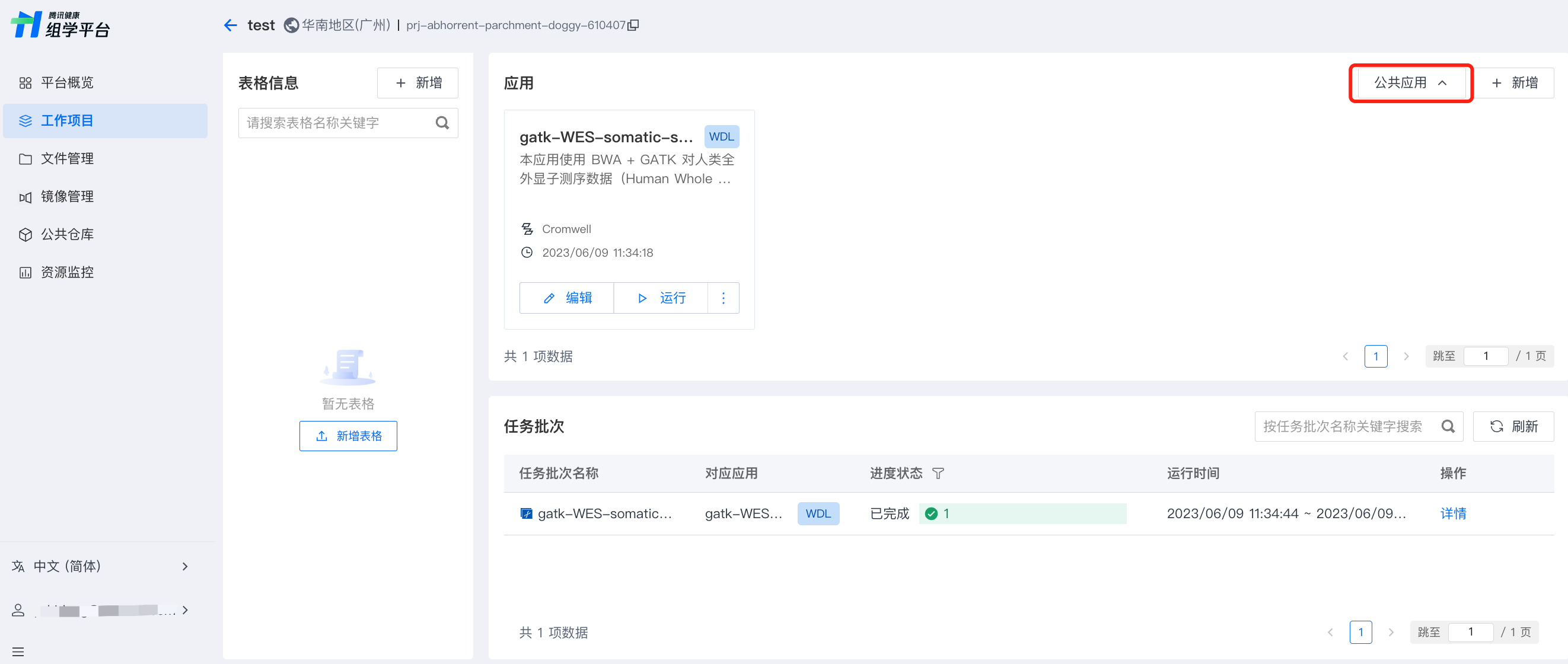 进入任意工作项目,单击应用模块右上角公共应用。