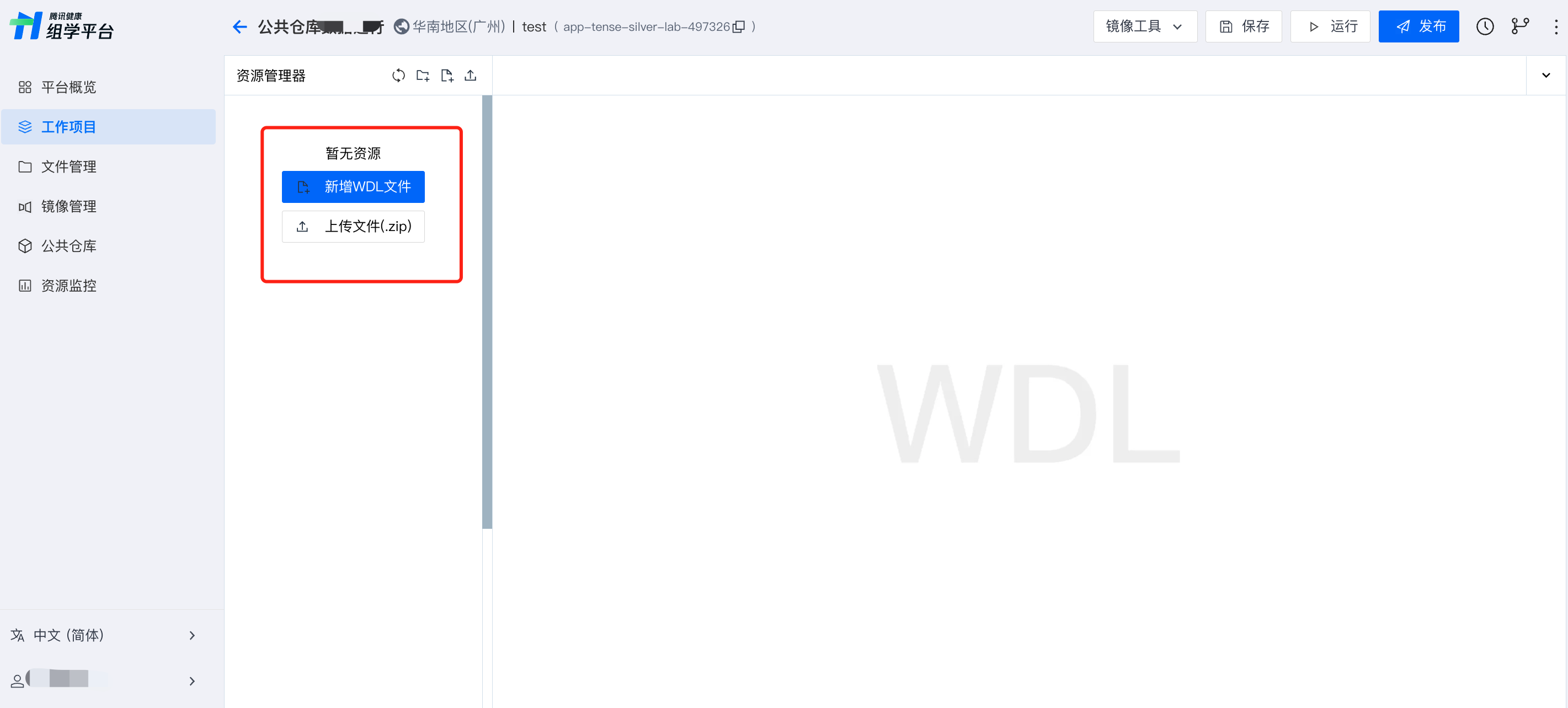 在应用编辑页面的资源管理器中,可以上传本地的 WDL 文件。