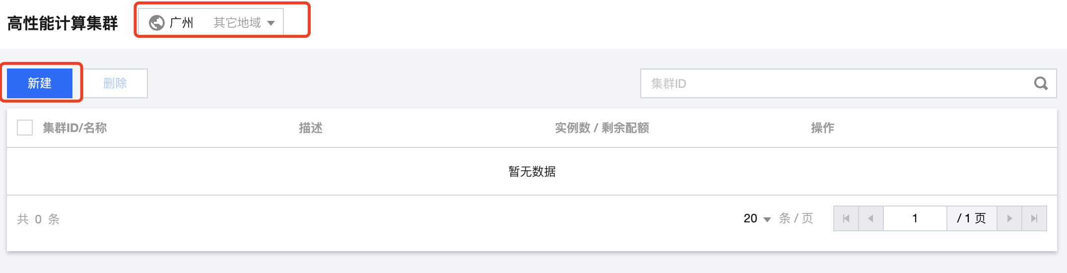 2. 在高性能计算集群列表页面中,按需选择地域。