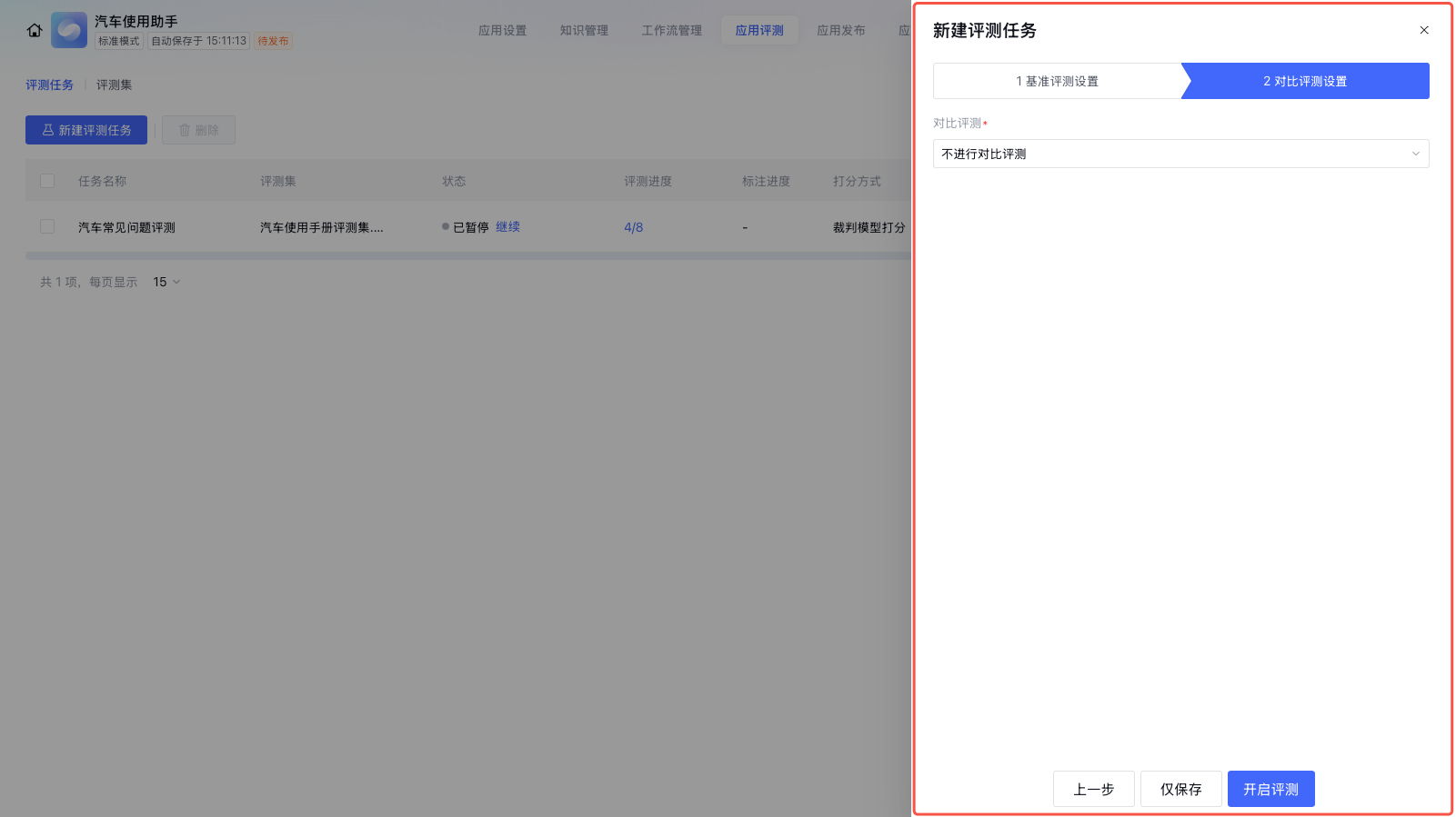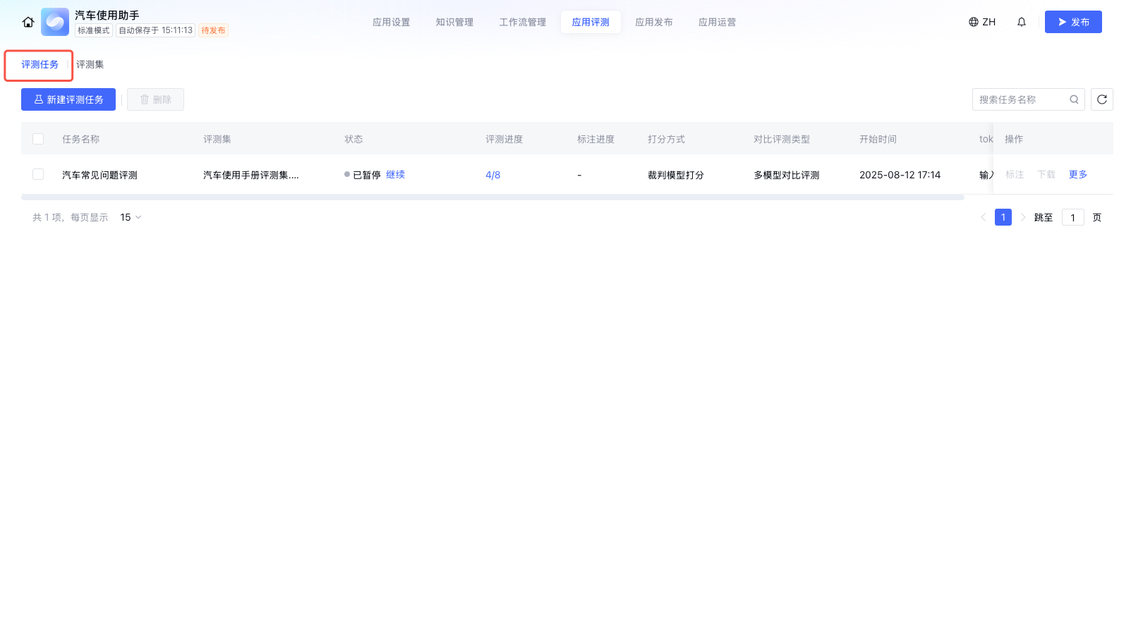 评测任务是执行应用评测的核心环节,支持用户选择不同的评测方式启动评测任务并管理评测流程。