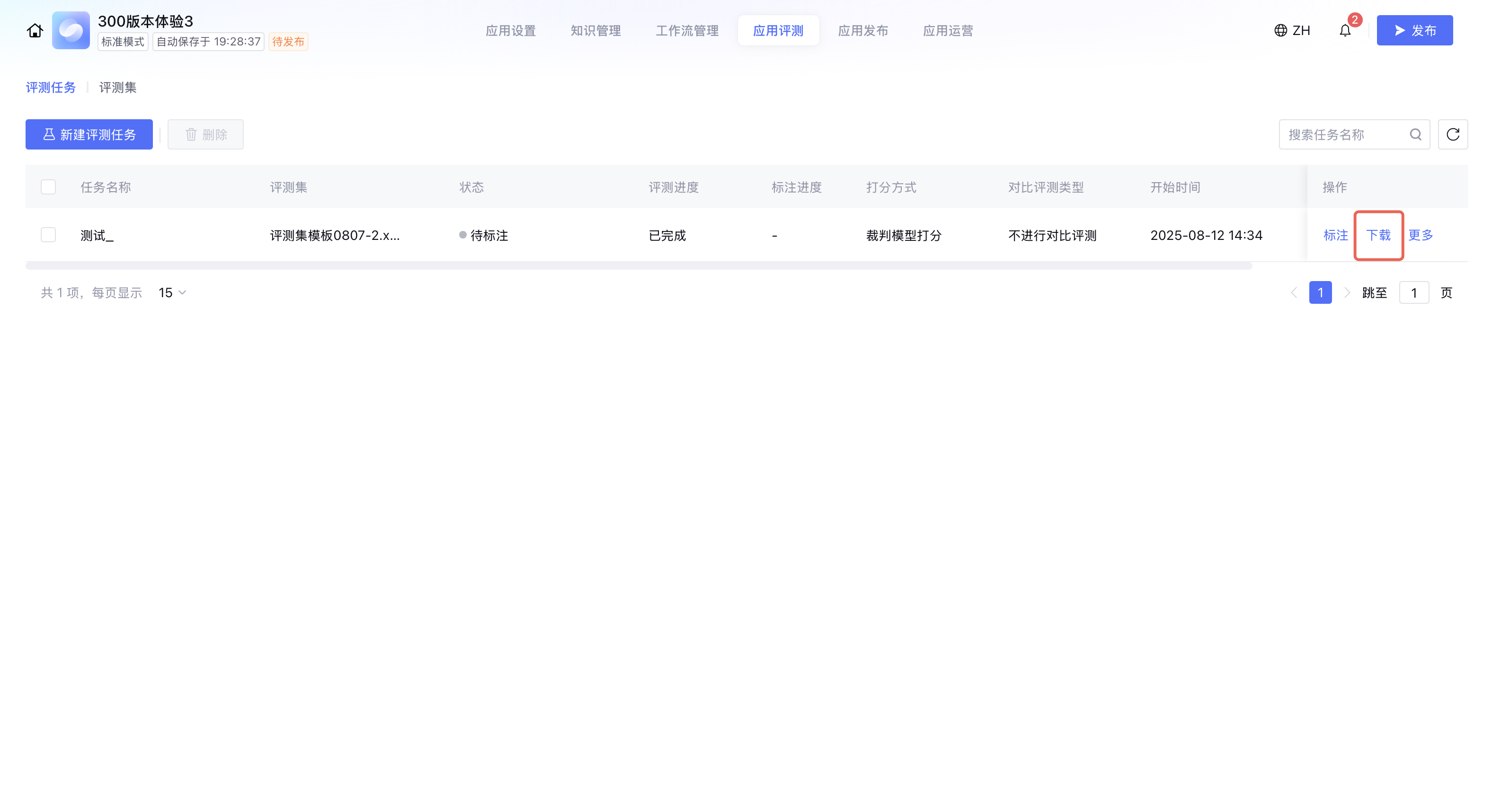 若希望看到完整的评测结果与记录,点击评测任务右侧的下载按钮触发下载任务。