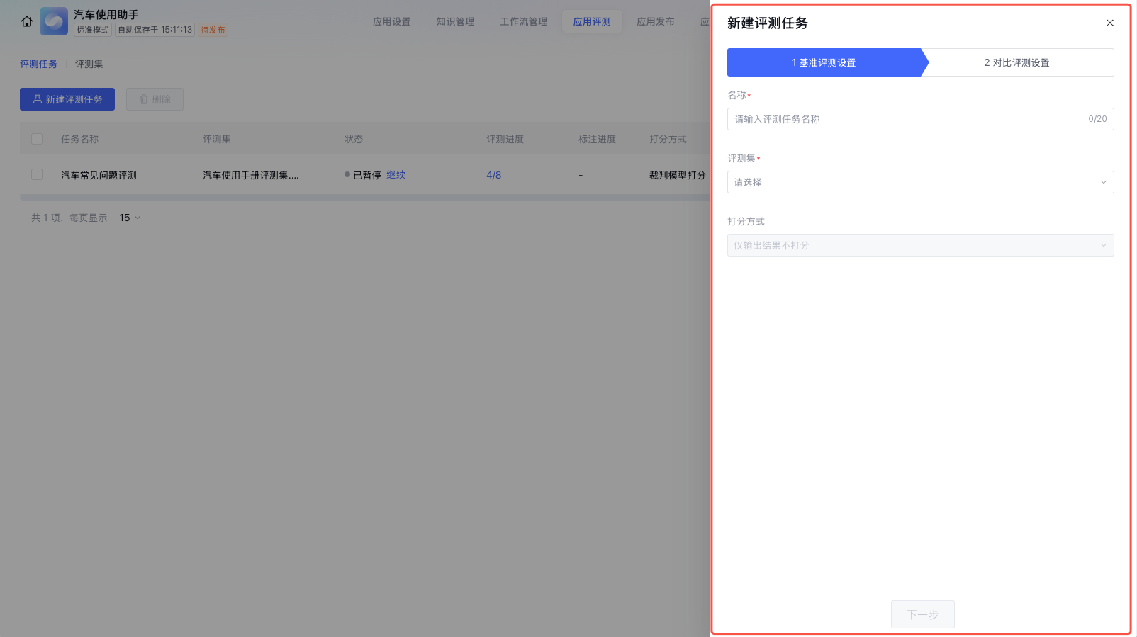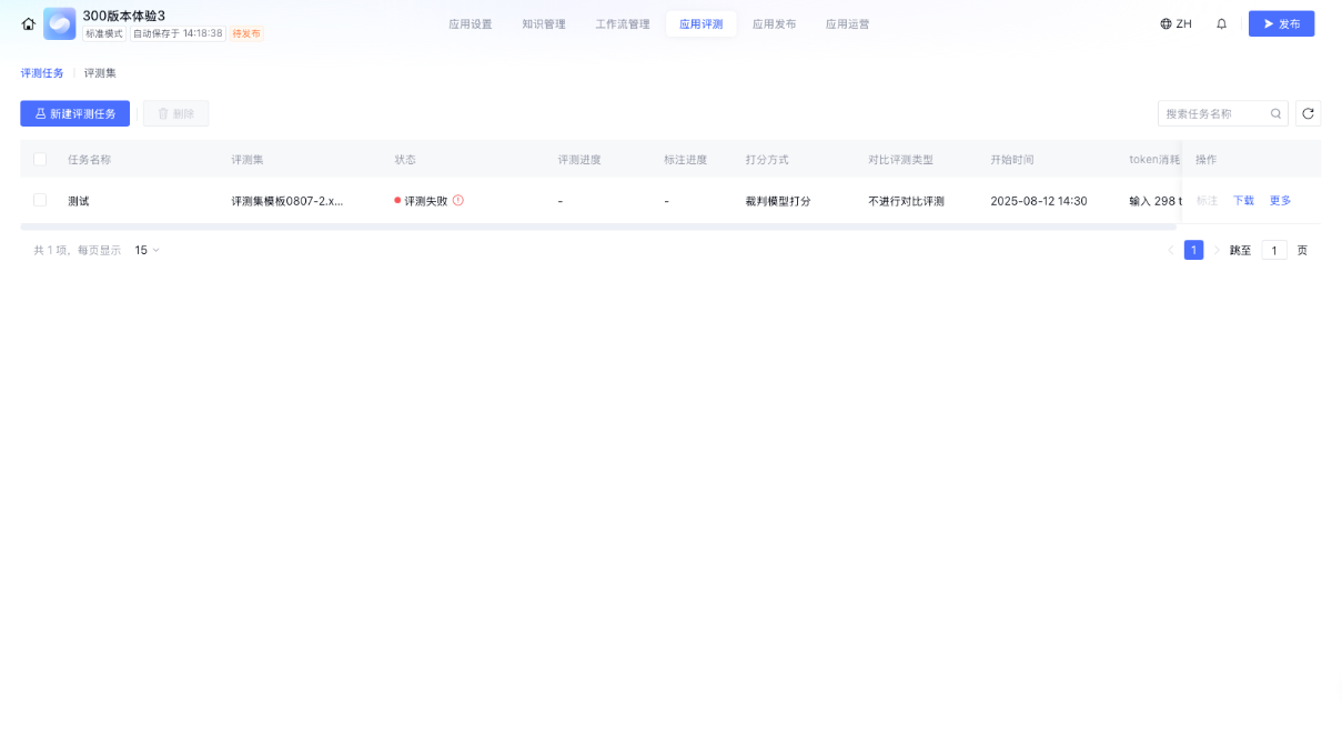 通过应用评测,用户可持续优化智能体应用的表现与体验。