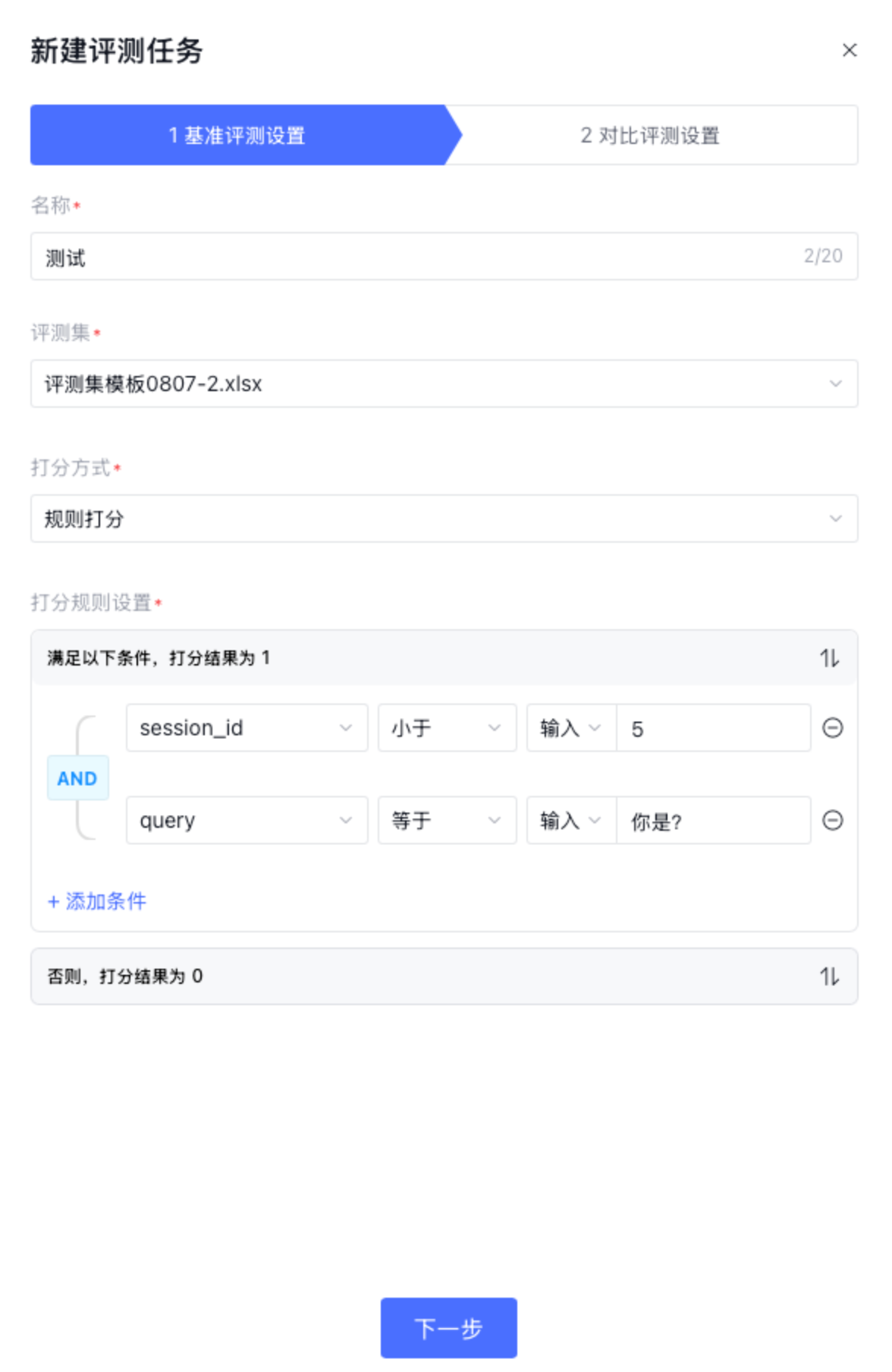 2. 规则打分:按照预定义的规则对输出结果进行打分。支持单条规则和多条规则组合 。