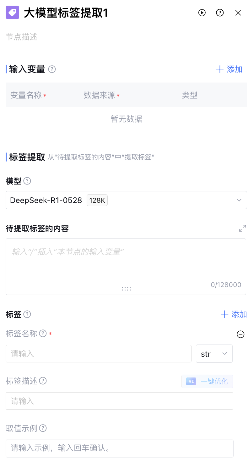 其中大模型标签提取节点配置如下: