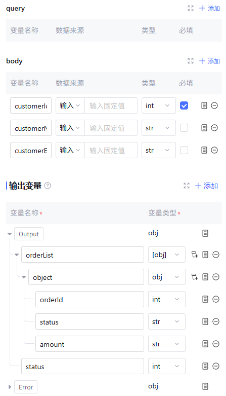 数据来源 | 该变量的数据来源,支持“引用”“输入”两种选项。“引用”可选择前序所有节点的输出变量,“输入”可手动填入固定值 |