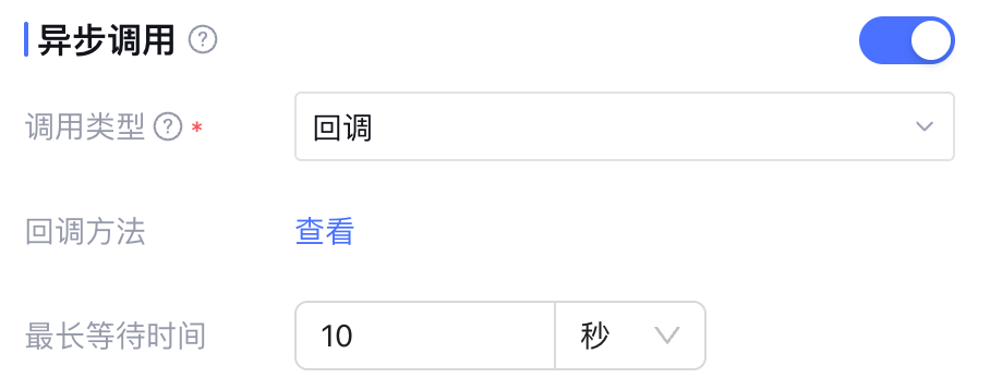 最长等待时间 | 节点进行回调的等待时长,时间单位支持秒/分,默认选中秒;在选中秒为时间单位时,默认值为 10s,最大值 600s。选中分为时间单位时,默认值1min,最大值10min |