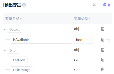 变量类型 | 该变量的数据类型,不可选择,默认为“引用”的变量类型或“输入”的 string 类型 |