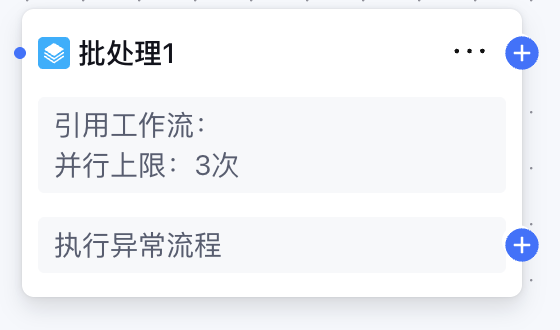 批处理并行上限:表示批处理任务的并行数量,用于控制同时执行多少个批处理体。支持设置范围为1~10次,当设置为1时即为串行执行,效果与循环节点的“遍历全部元素”效果相同。