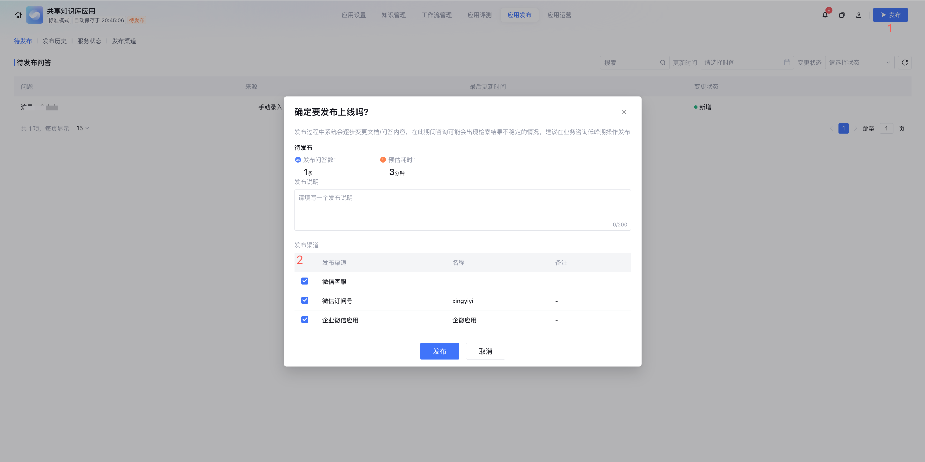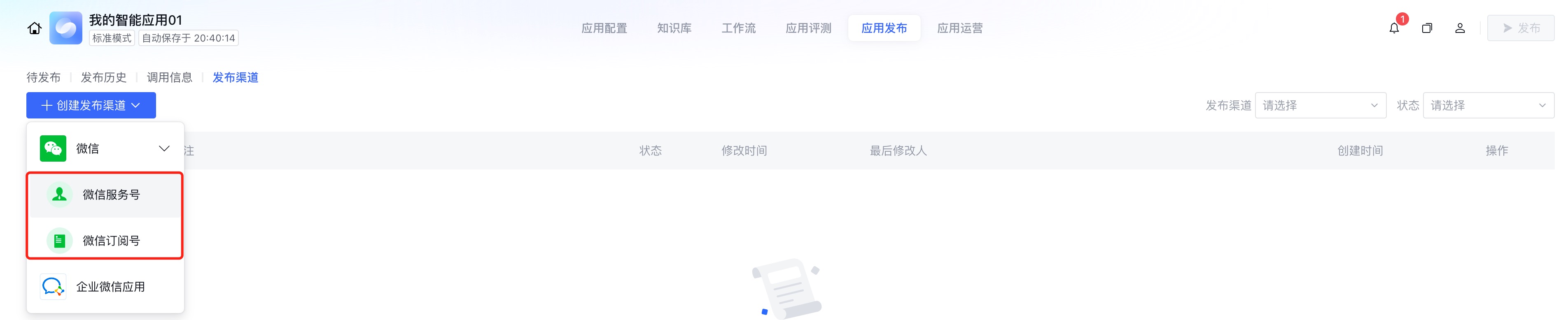 5. 发布应用时选择微信公众号渠道。成功发布后,您可以前往微信公众号与智能体对话。
