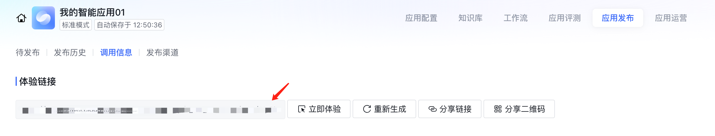 1. 进入智能体开发平台 > 应用发布 > 调用信息 > 体验链接