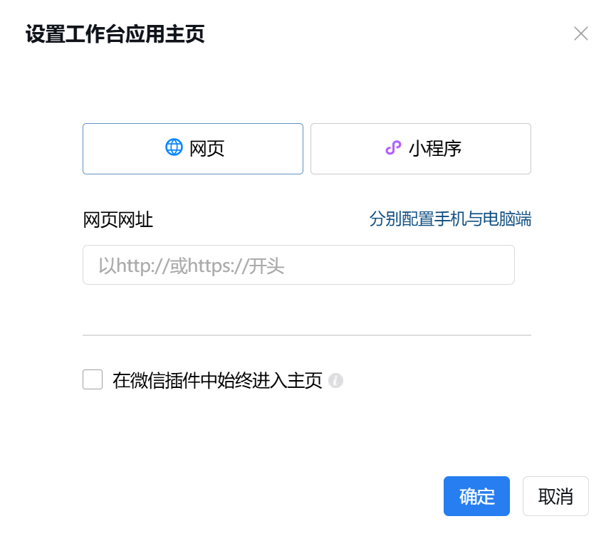 2. 进入企微应用详情 > 应用主页,单击设置后填入该链接即可。