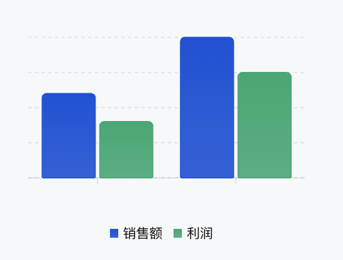 "basis" - 基础曲线"linear" - 直线"natural" - 自然曲线"monotoneX" - X 轴单调曲线"monotoneY" - Y 轴单调曲线"step" - 阶梯曲线"stepBefore" - 前阶梯"stepAfter" - 后阶梯<ChartxAxis="month"data={[{ month: "1月", sales: 120, profit: 80 },{ month: "2月", sales: 200, profit: 150 }]}series={[{ type: "bar", dataKey: "sales", label: "销售额", color: "#0052D9" },{ type: "bar", dataKey: "profit", label: "利润", color: "#00A870" }]}/>