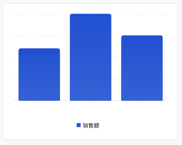 <Card><ChartxAxis="month"data={[{ month: '1月', sales: 120 },{ month: '2月', sales: 200 },{ month: '3月', sales: 150 },]}series={[{ type: 'bar', dataKey: 'sales', label: '销售额', color: '#0052D9' },]}/></Card>