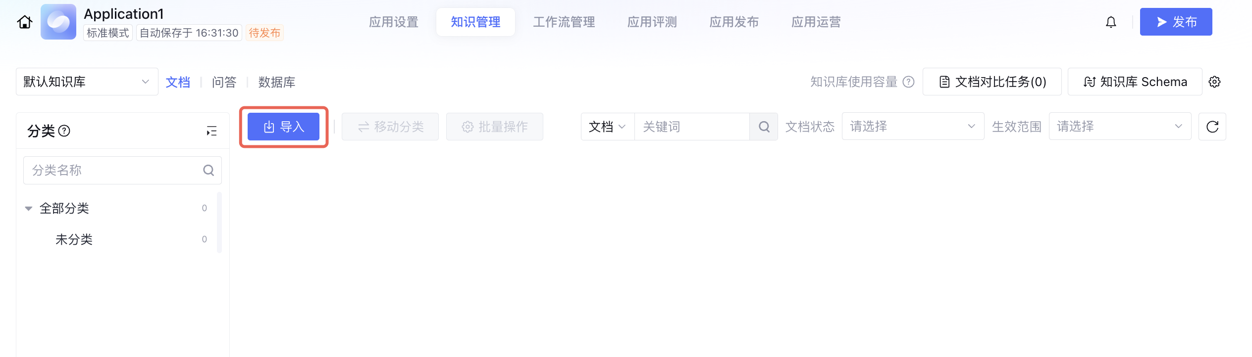 知识库存储的数据称为知识,包含文档、问答和 数据库三种类型。您可以在默认知识库导入文档、新建问答或数据库。 知识管理模块内不支持修改已关联的共享知识库,若希望在共享知识库内导入更多文档,请返回控制台,单击左侧的知识库,选中目标知识库导入更多知识。 调整知识库设置