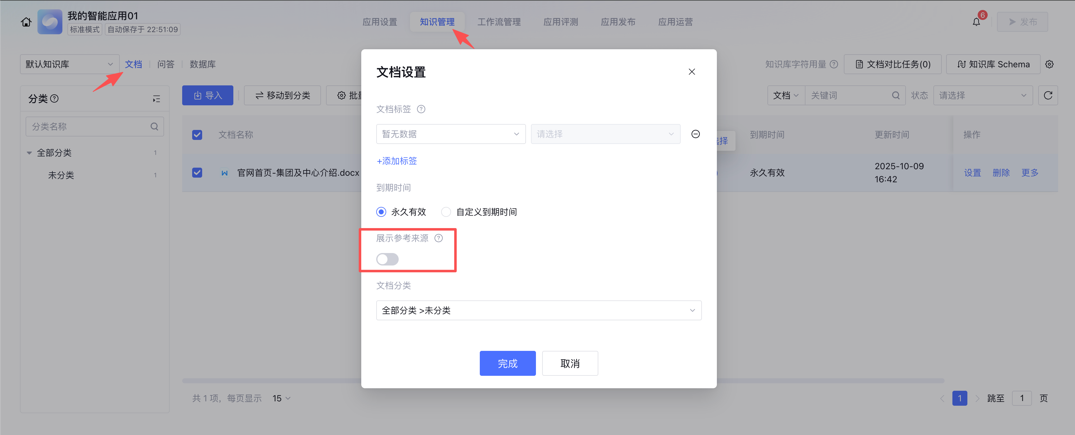 打开展示参考来源的按钮后,当智能体命中知识库文档时,即可展示出参考来源。
