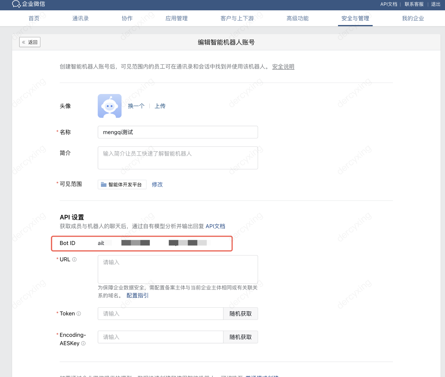 复制机器人 ID 后先不要关闭页面,后续需要从智能体开发平台中拿到 URL 等信息填入。