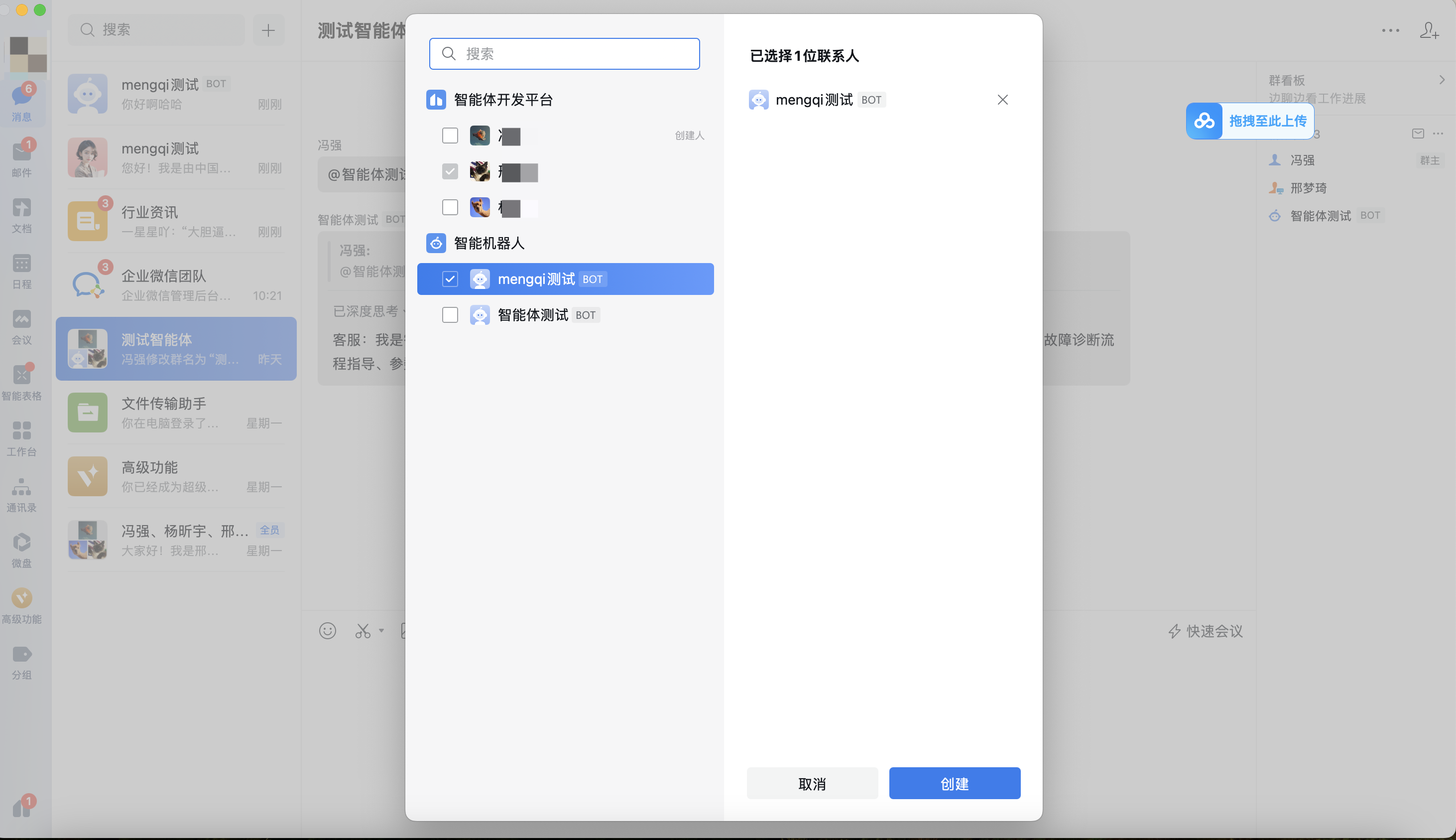 2. 企微智能机器人支持群聊,拉群时选择智能机器人。