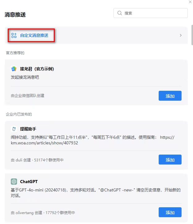 4. 在添加自定义消息推送的弹窗中,补充信息。