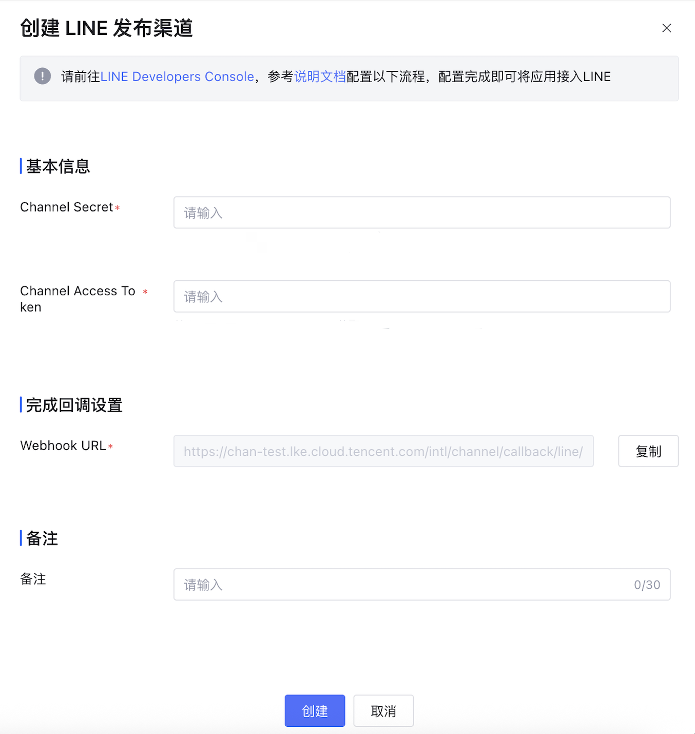 步骤二:创建 LINE 发布渠道
