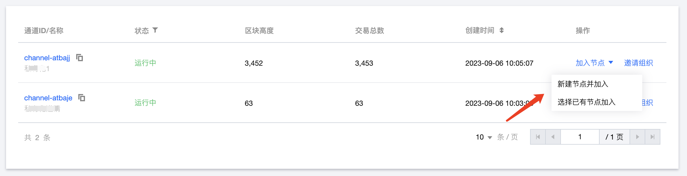 往通道内加入节点分为两种模式,一是新建节点并加入,二是选择已有节点加入。具体操作如下: