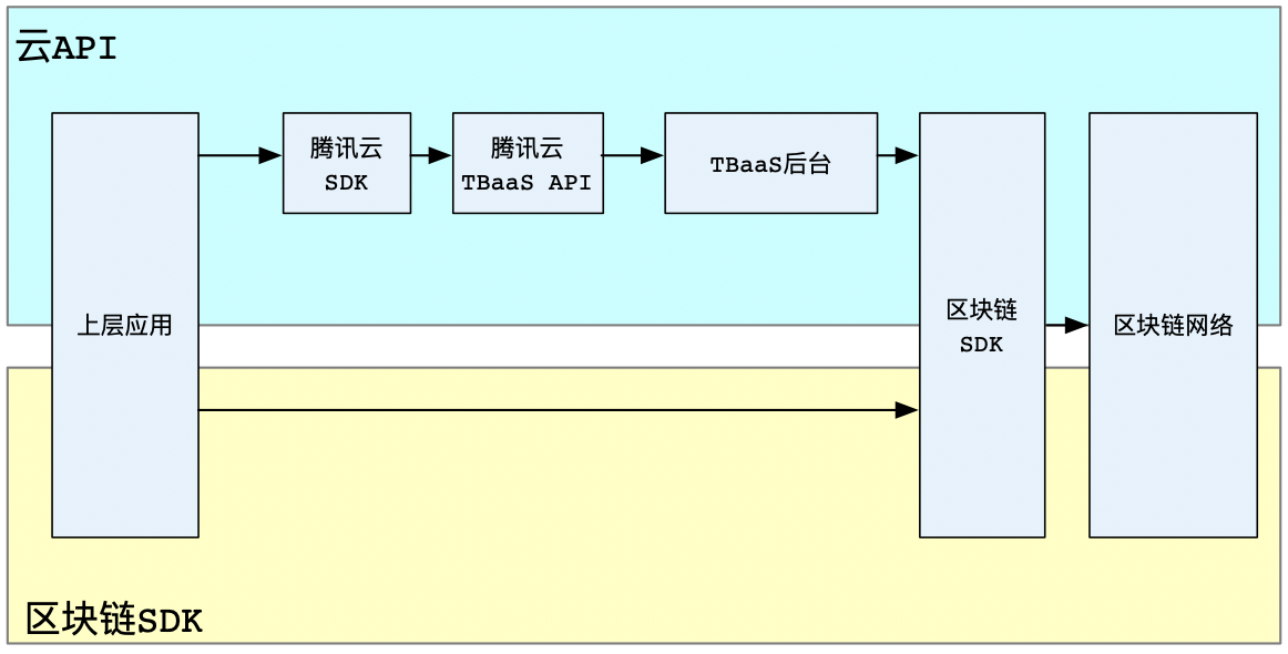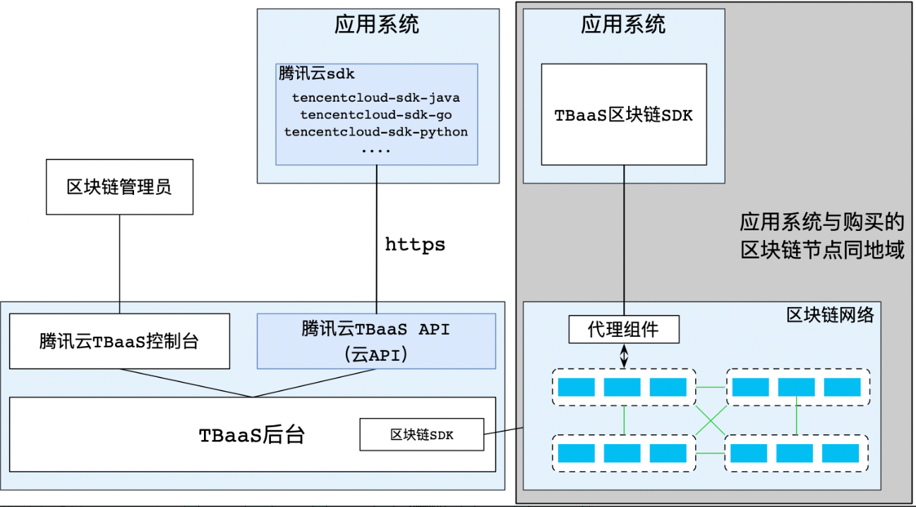 区块链 SDK | 配置繁琐,功能强大。 tbaas-fabric-sdk-java 在原生社区 SDK 上进行了封装,简化配置流程的同时,保留了丰富的功能支持。 chainmaker-sdk-go-demo 详细地介绍如何使用SDK对接长安链网络,并提供完整的 Demo,帮助用户快速了解 SDK 对接的方式。 | 用户侧应用系统对区块链的调用频率超过20笔每秒(TPS)。 用户侧应用系统已经基于区块链原生的 SDK 进行了相关开发,迁移至云上时,希望改动尽可能少。 若需内网服务(需购买腾讯云服务器),用户侧服务器所在 VPC 与区块链网络在同一地域。例如,用户侧服务器 VPC 在广州,区块链网络也需要购买在广州,目前 TBaaS 仅支持同地域打通。 目前Fabric 支持内网、外网服务。 |