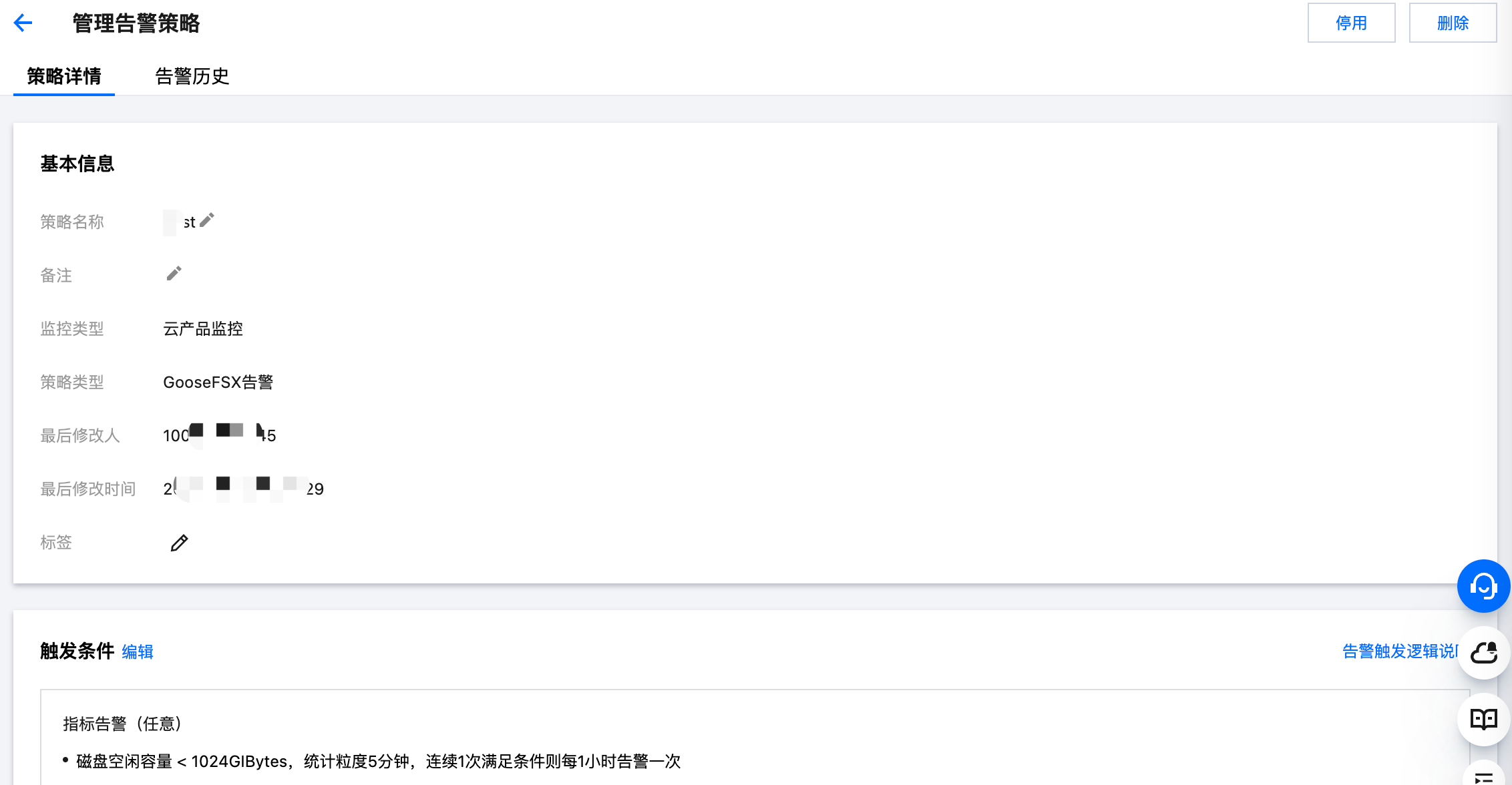 3. 单击左侧的监控信息,可查看各个监控模块,单击监控模块上的图标,可快速跳转到腾讯云可观测平台的告警管理页面,配置说明请参见腾讯云可观测平台 新建告警策略。已配置告警策略的示例,如下图所示: