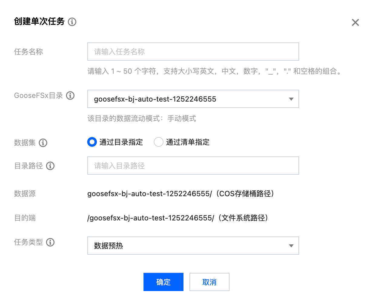 目标路径:指定需要预热的目录路径,比如,该 GooseFSx 目录、或该 GooseFSx 目录下的某个子目录。