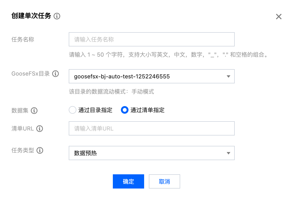 若 GooseFSx 目录的数据流动模式是按需加载 Lazy-load(自动模式 L),数据集暂不支持通过清单指定,任务类型暂不支持数据预热。