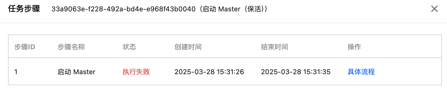 6. 在任务步骤中,可以单击具体流程,在弹窗中查看每个步骤的详细流程的执行状态、创建时间和结束时间。