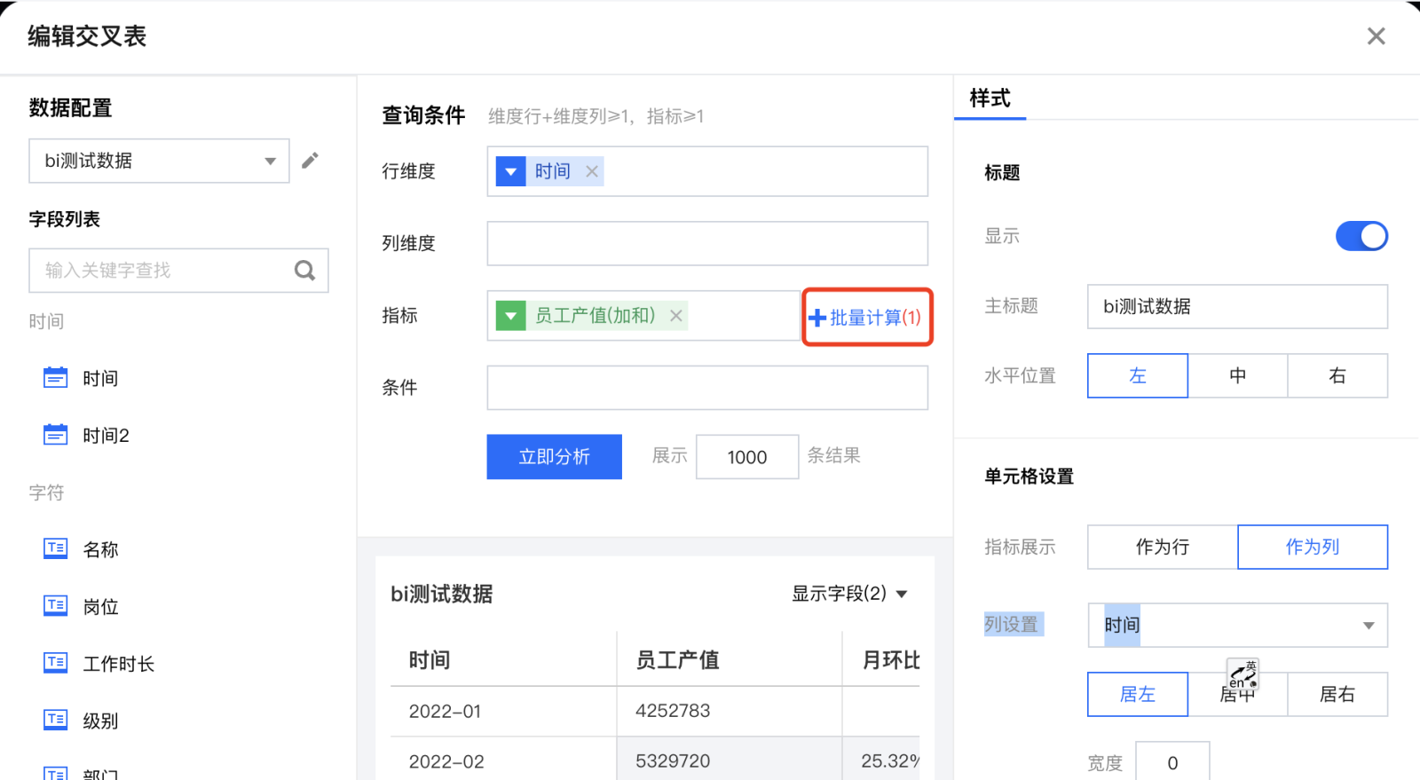 计算指标-设置计算结果样式 | 设置该指标计算的数据结果样式 | 详见下面的《设置批量计算格式》 |