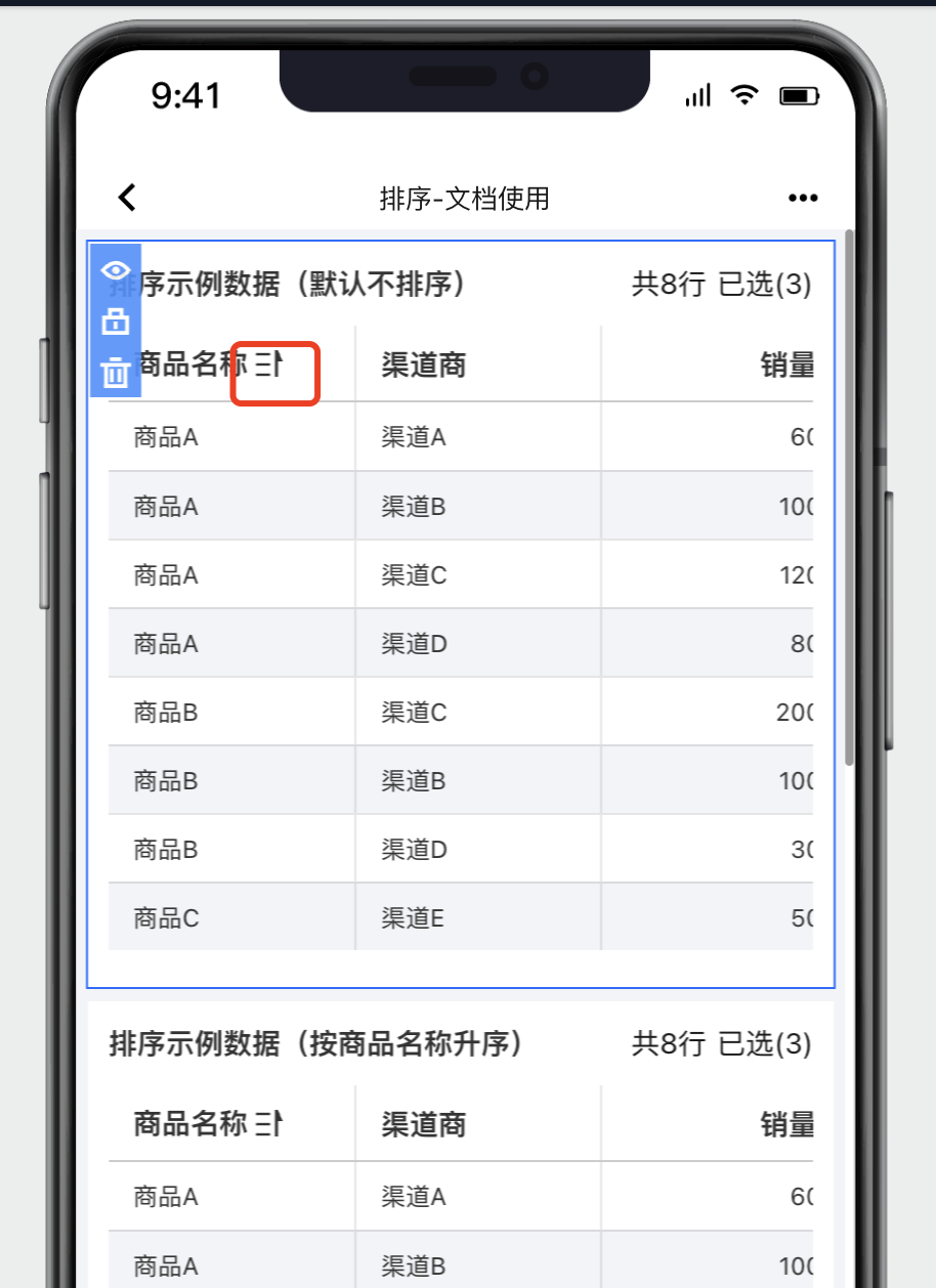 移动端因有其特殊性,无法进行复杂的排序,仅支持根据编辑端设置的规则,切换 不排序、升序、降序。