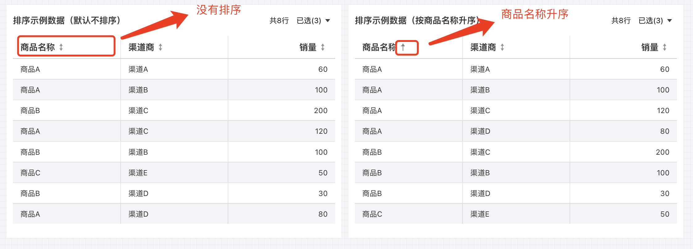 不排序:回到默认排序。