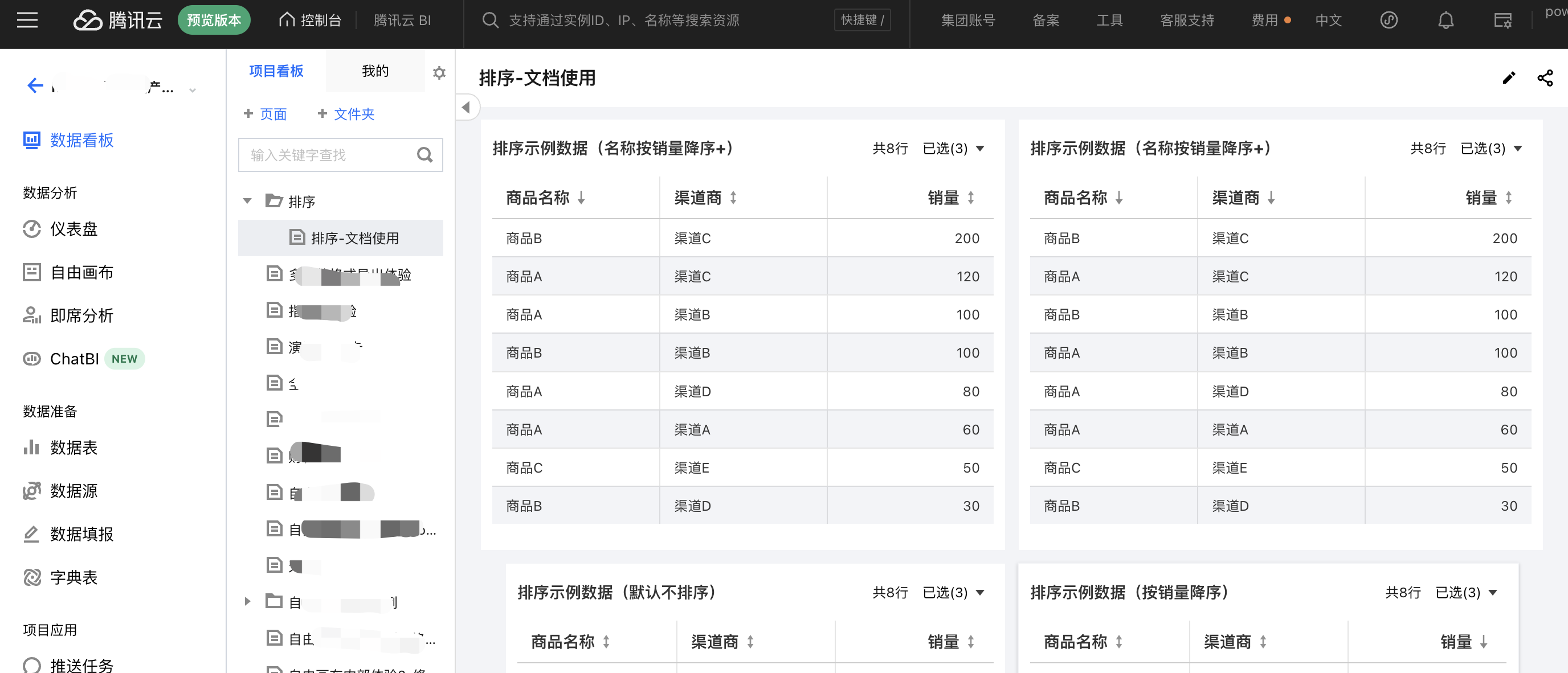 在数据分析时,编辑端的排序决定了数据计算的对象范围;用户在访问时,可通过排序快速获取重点信息的罗列展示。