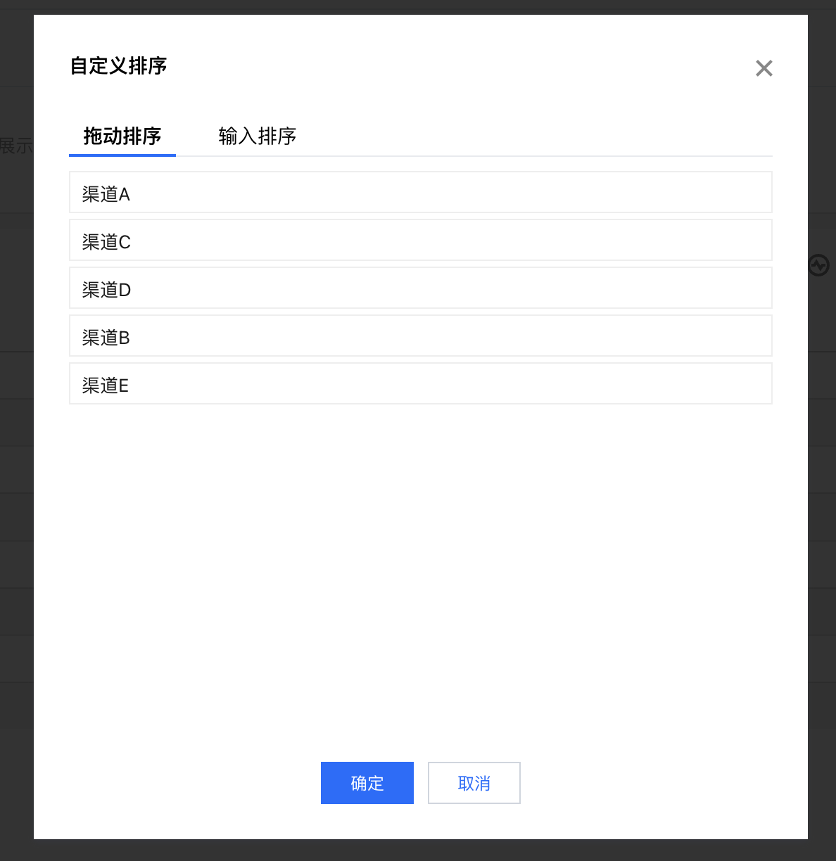 3. 当你的数据较多时,不便于拖拽排序,也可以使用输入排序的方式,直接输入文本来进行排序。 输入排序时,不需要把全部维值给输入,没有输入的值,会按照自然排序;