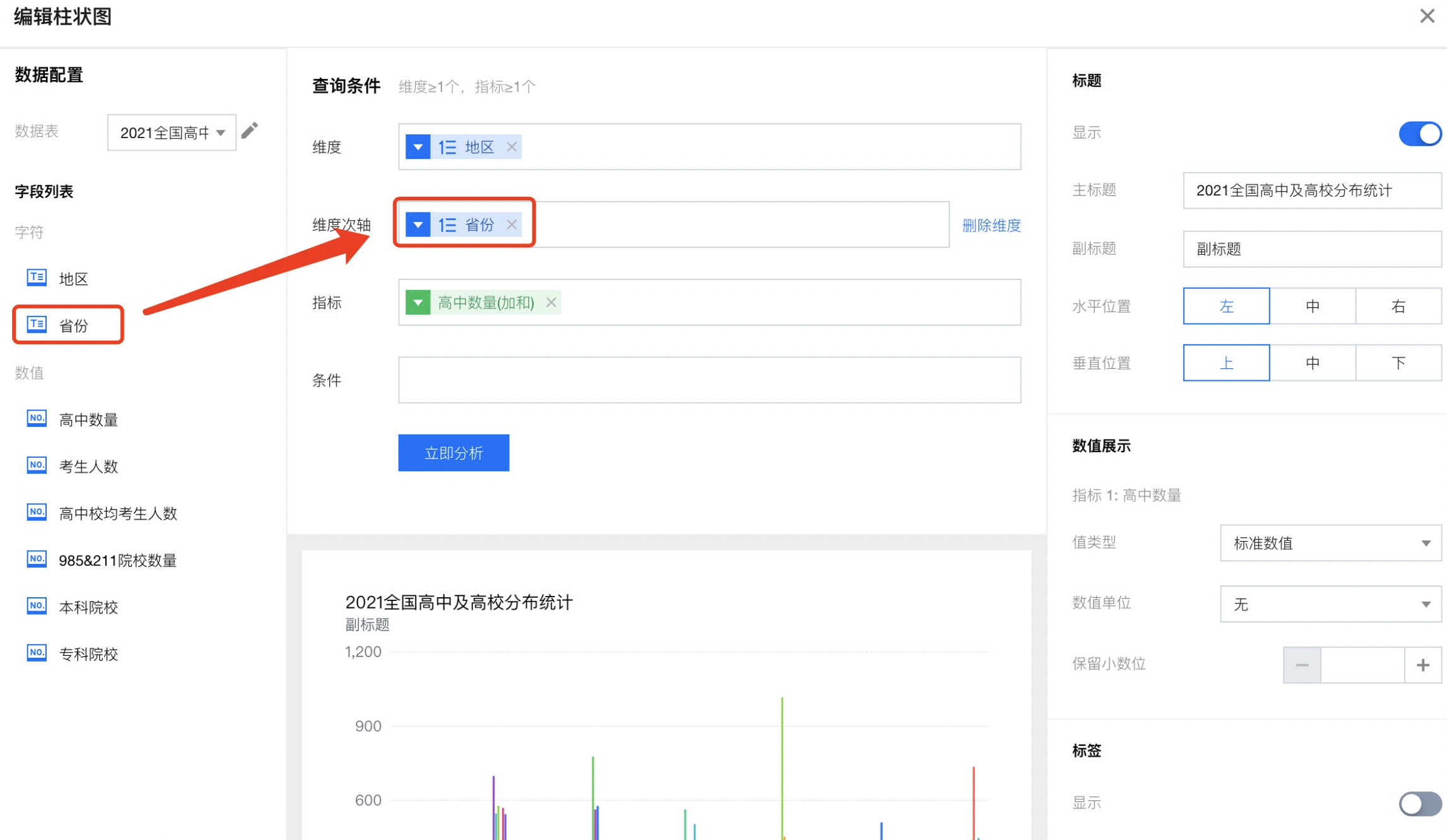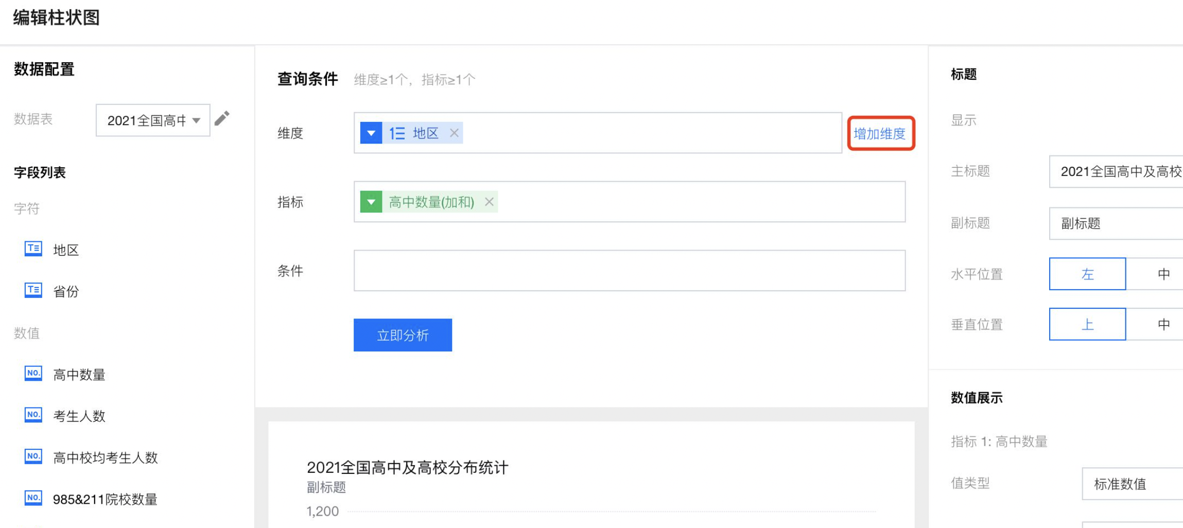 将需要展现的次轴维度字段拖入“维度次轴”框: