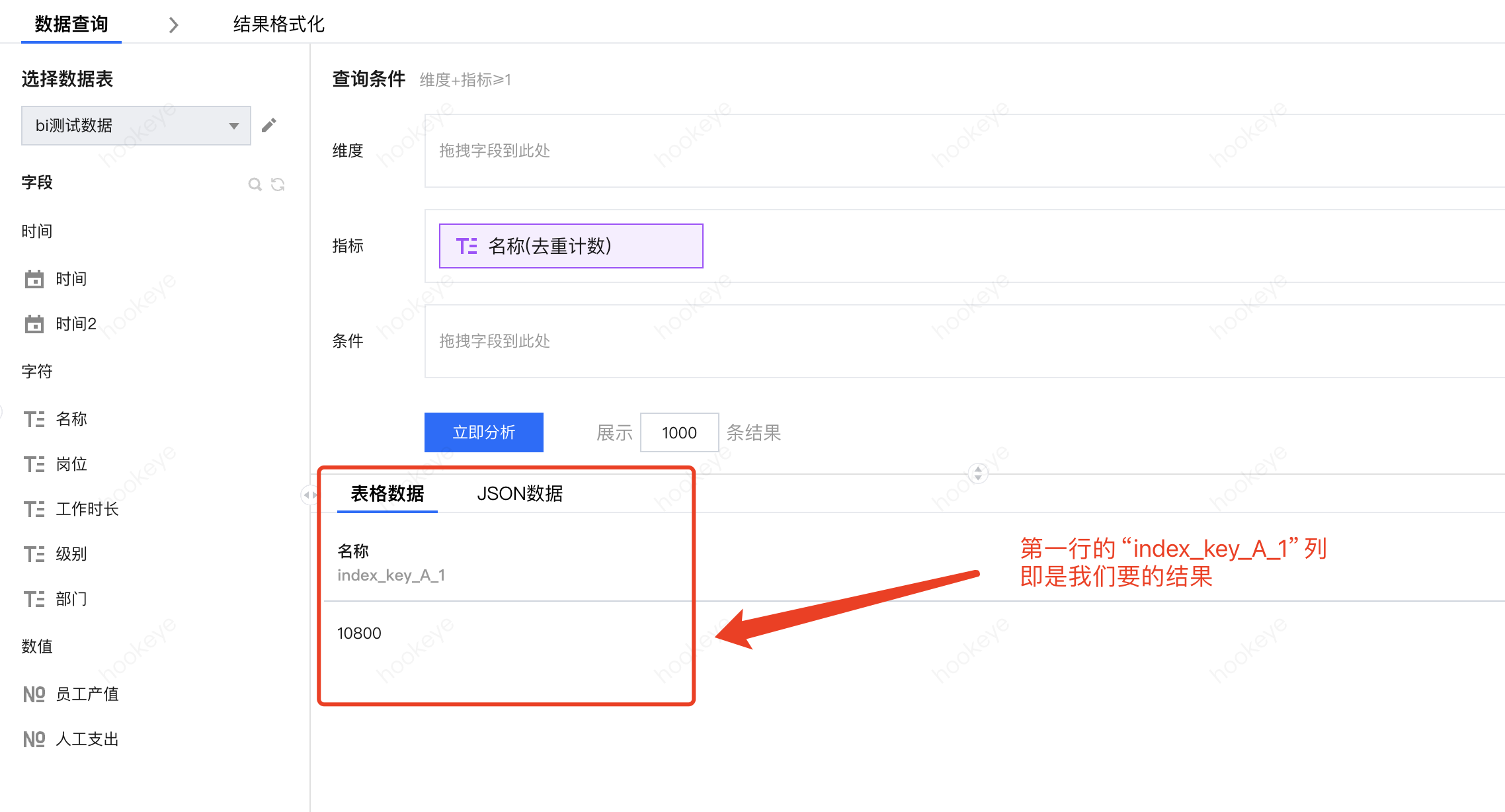 结果格式化:打开结果格式化面板,获取第三行的“index_key_H_1”列(即员工产值列):