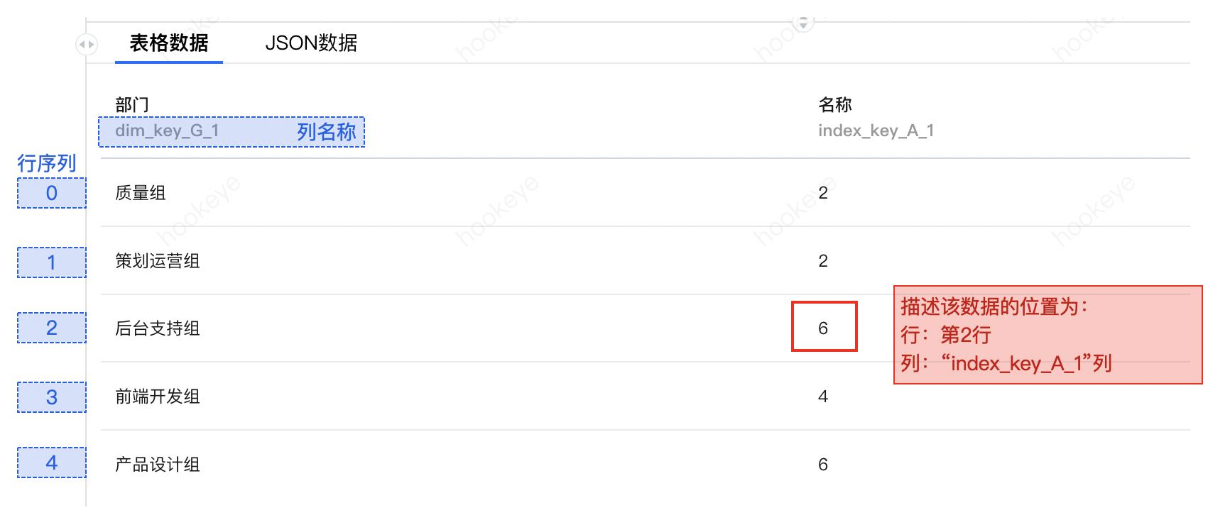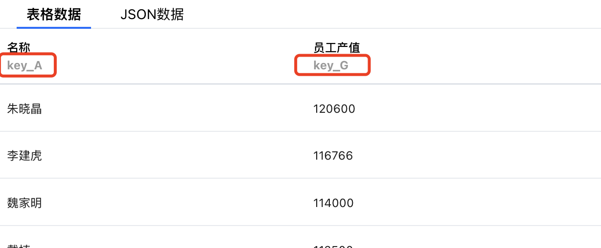 获取列:代码中的“y”代表列 key,该 key 可以从表头中查看(该值为 string,需要单引号包起来),如下: 以“按照产值倒序,获取第三名员工产值”为例,可如下: