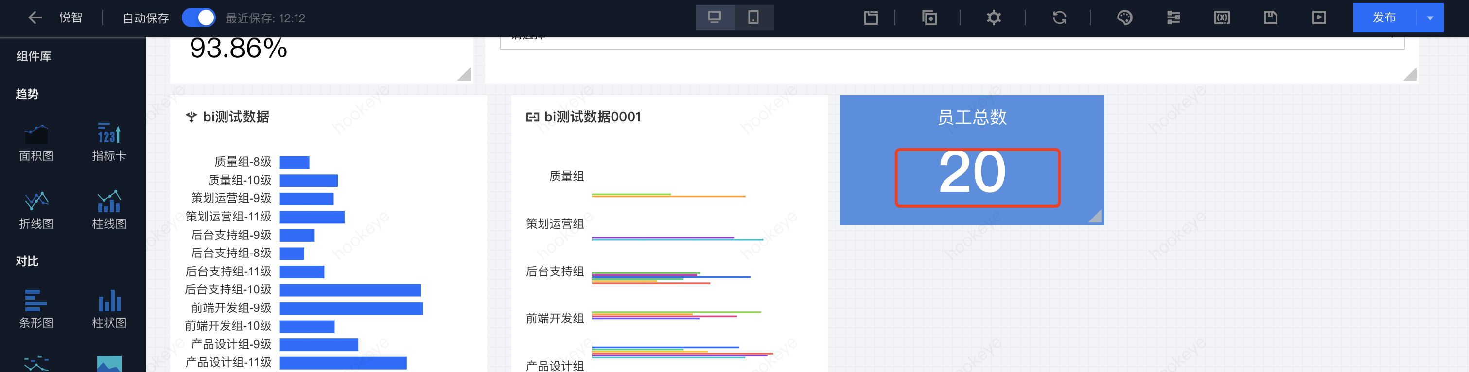 通过“快捷分析”,可以取得图表分析的结果,操作同图表编辑。下面以“获取当前员工数量”为例: