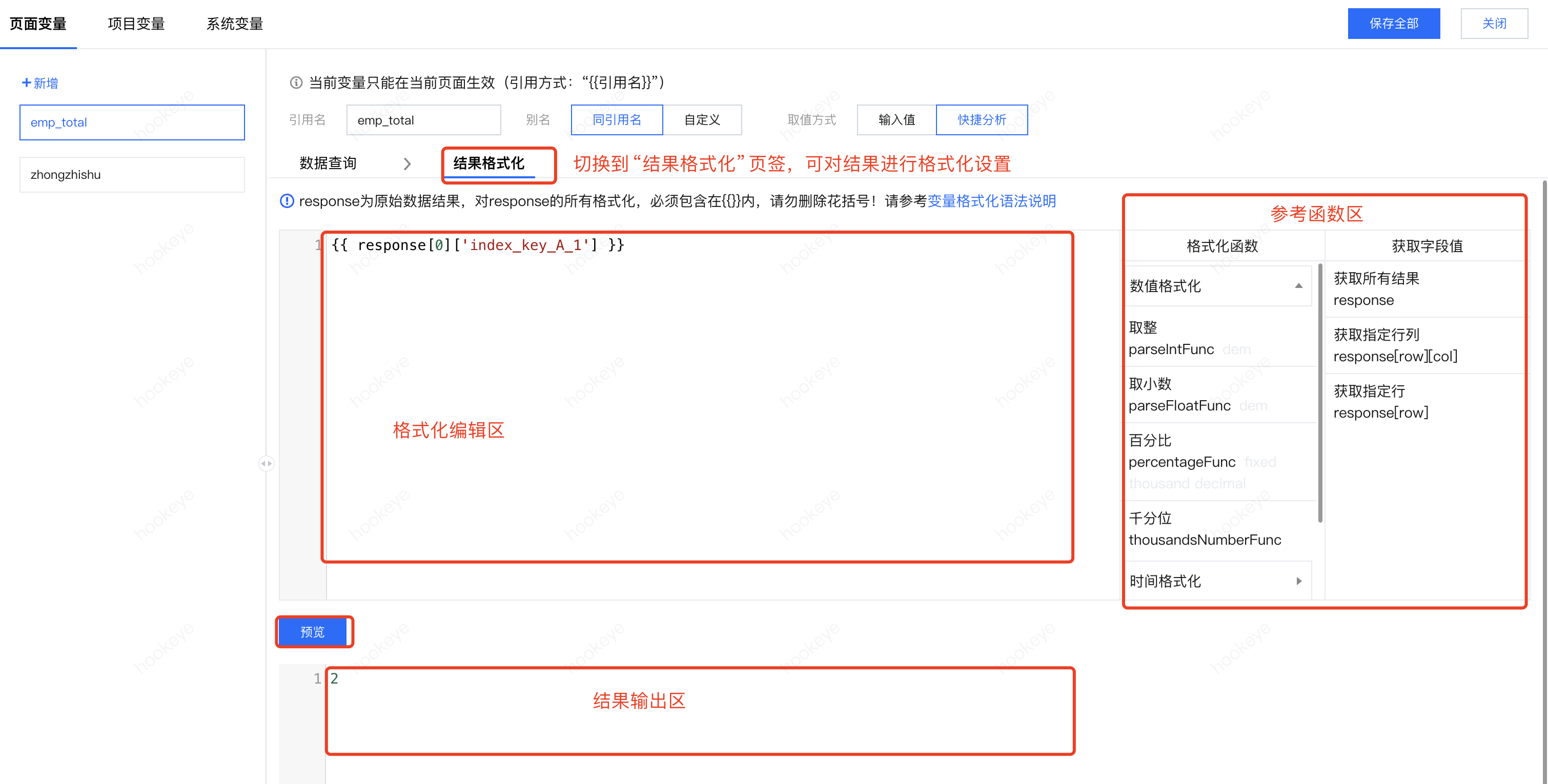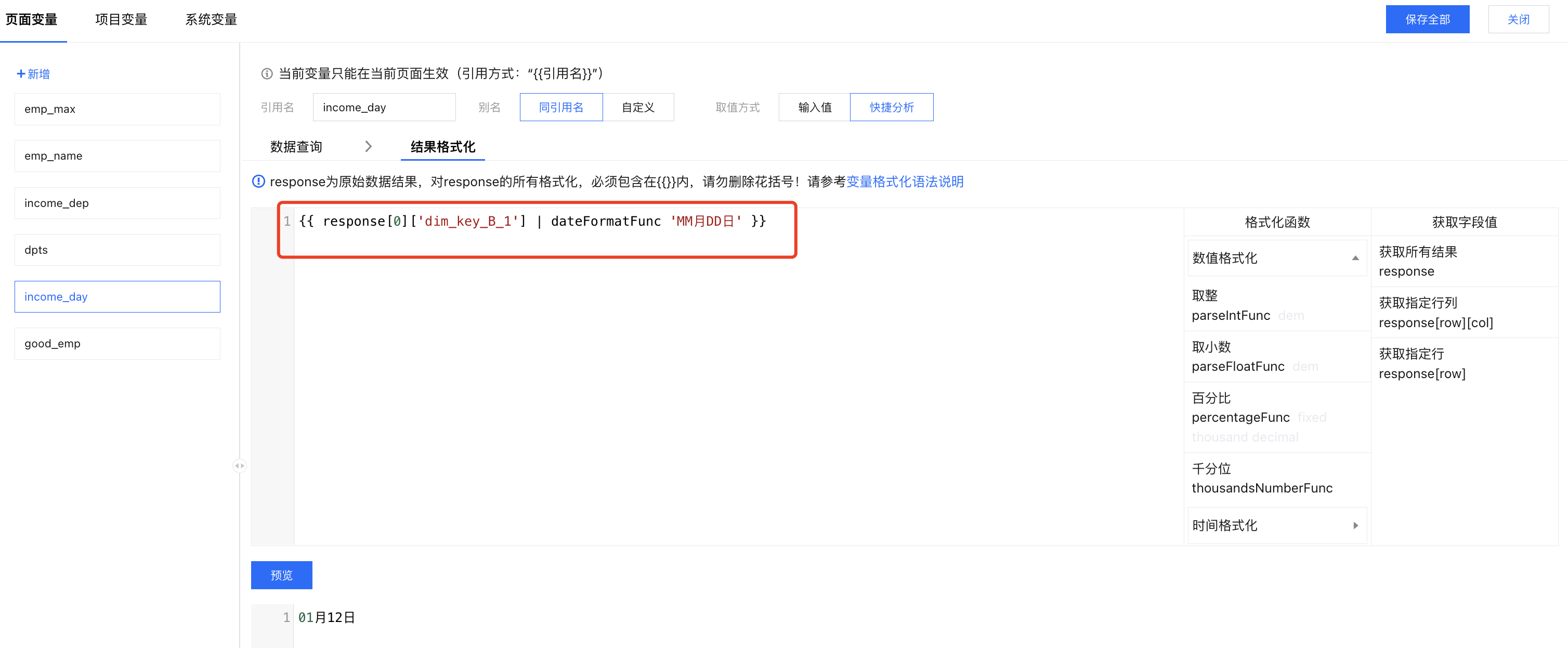 以上步骤也可以在变量编辑的结果格式化里进行,此处演示在引用时格式化,结果是一样的。