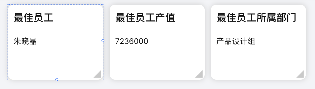 目标:在三个卡片里分别展示 最佳员工名称、所属部门、产值;