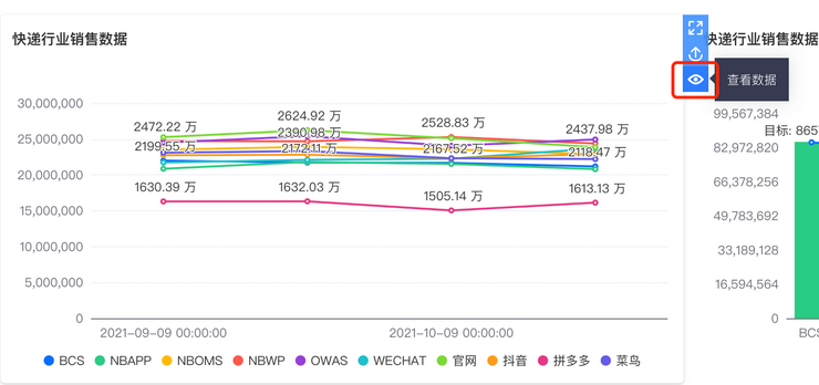 在数据分析场景中,有时需要查看图表的数据值,以便透过数据查看业务情况,查看图表数据操作如下: